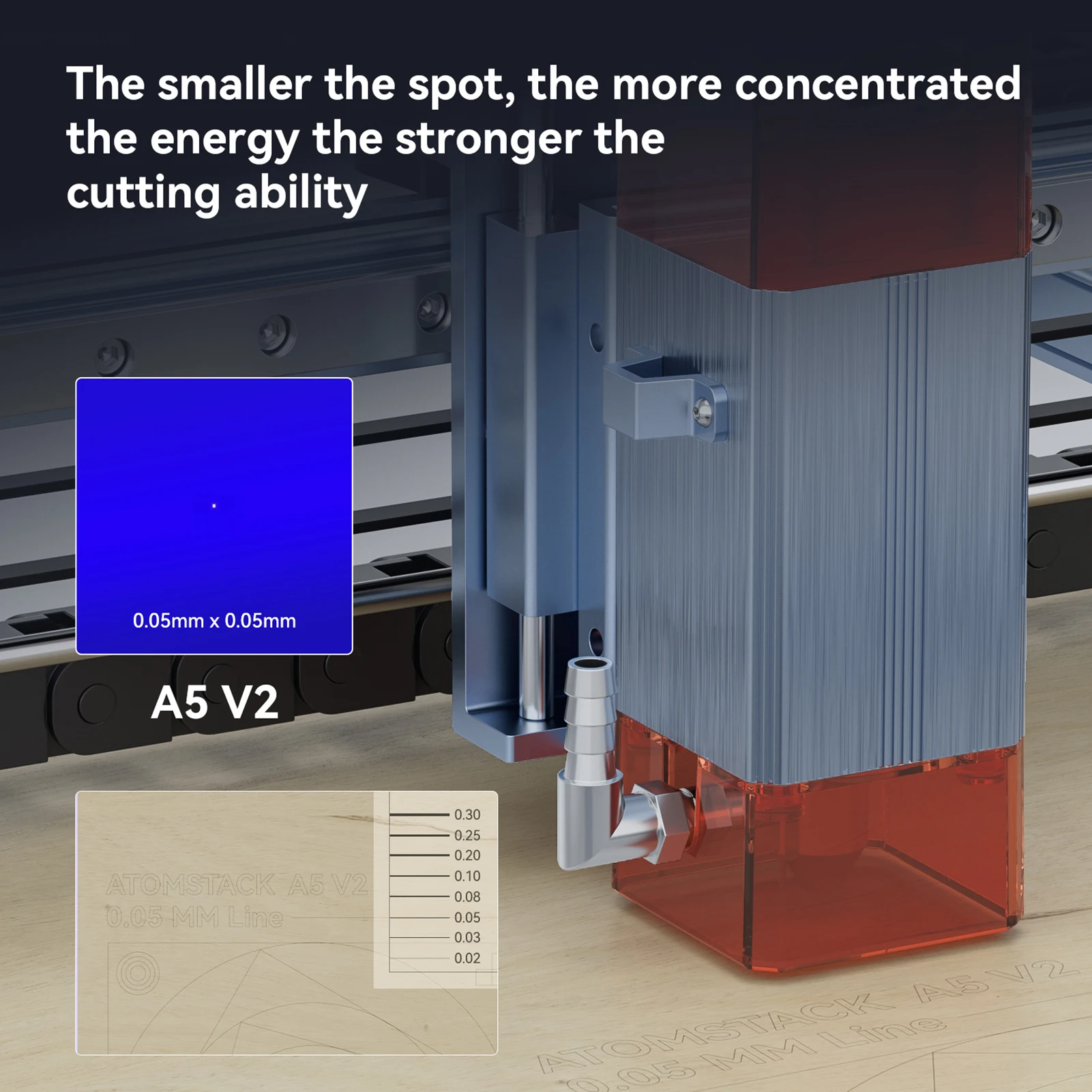 Technologie am¹Èlior¹Èe de couplage par points ½Ç double compression: la zone de mise au point laser ultra-fine est r¹Èduite ½Ç 0.05*0.05mm, et le laser haute densit¹È peut facilement couper du bois de balsa de 10mm, bois de paulownia de 10mm, contreplaqu¹È de tilleul de 5mm et acrylique noir de 12mm d'¹Èpaisseur; il peut graver directement le m¹Ètal en acier inoxydable miroir, la c¹Èramique, le verre, etc., La vitesse de gravure et de d¹Ècoupe est 40% sup¹Èrieure ½Ç celle du modõ¹le de compression sans tache, ce qui est comparable ½Ç l'effet d'une machine de gravure laser 90W CO?.