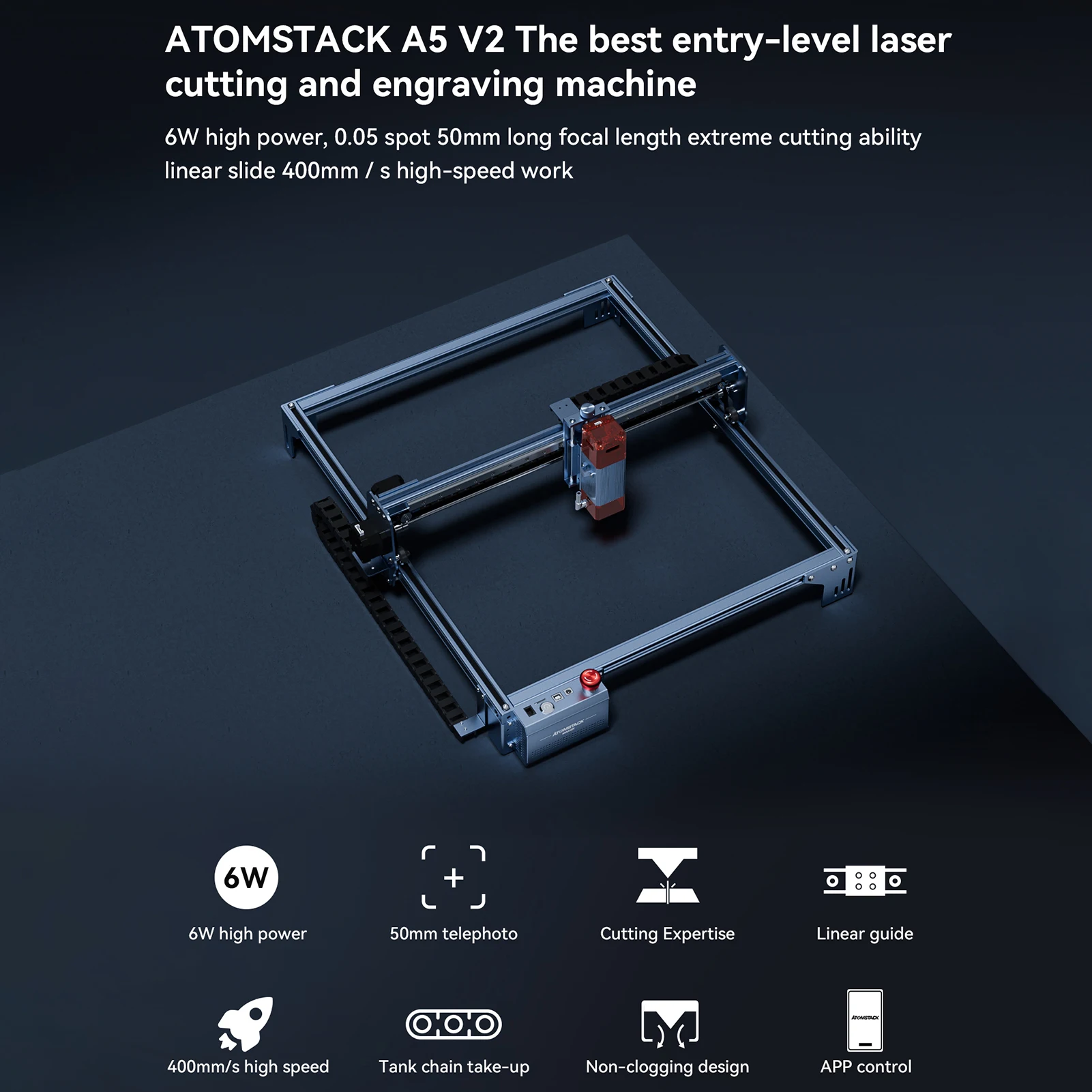 Graveur Laser A5 V2, Machine de D¹Ècoupe et de Gravure ½Ç Grande Vitesse, Mise au Point Partner Ultra-Mince, 6W, avec une Surface de 400x400mm
