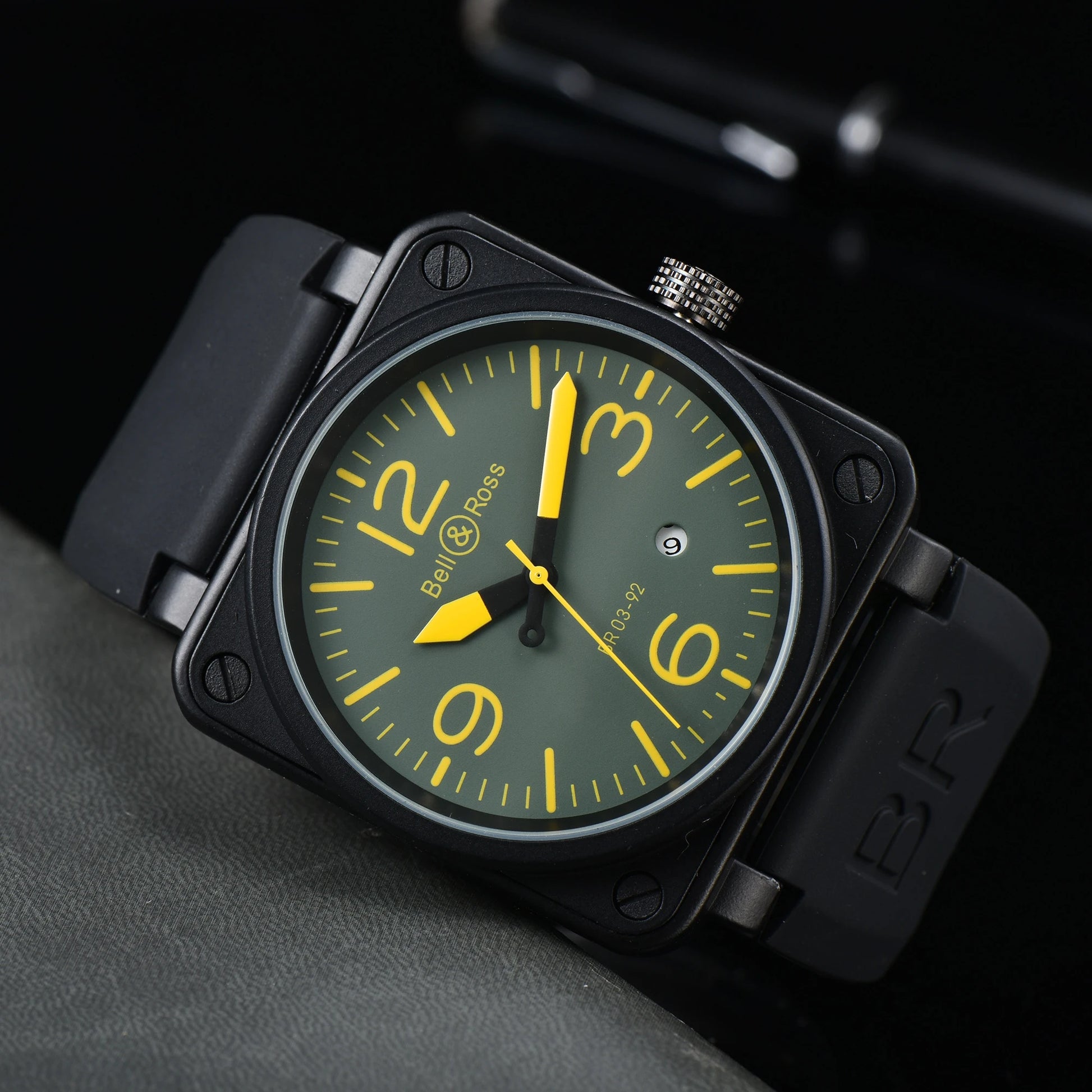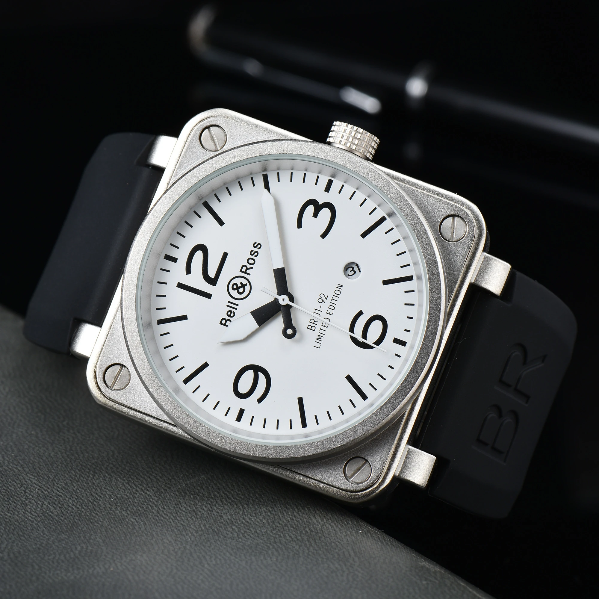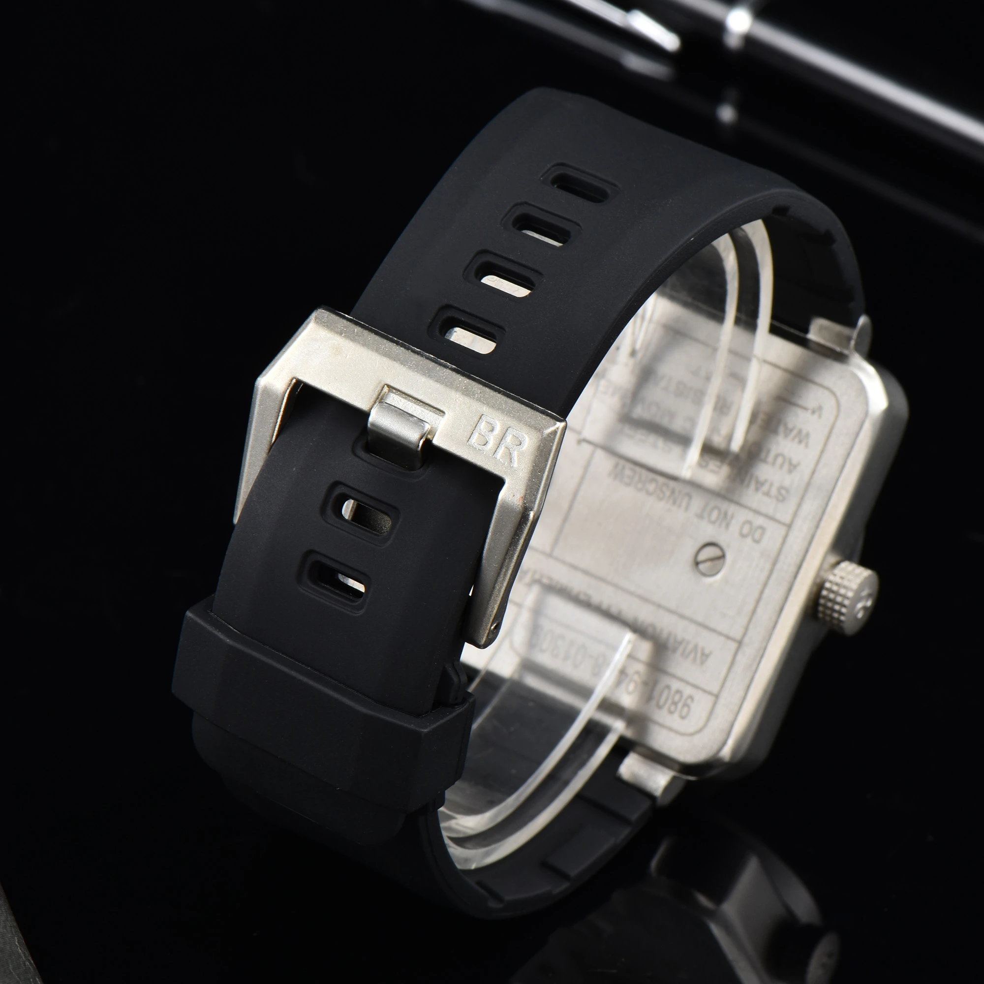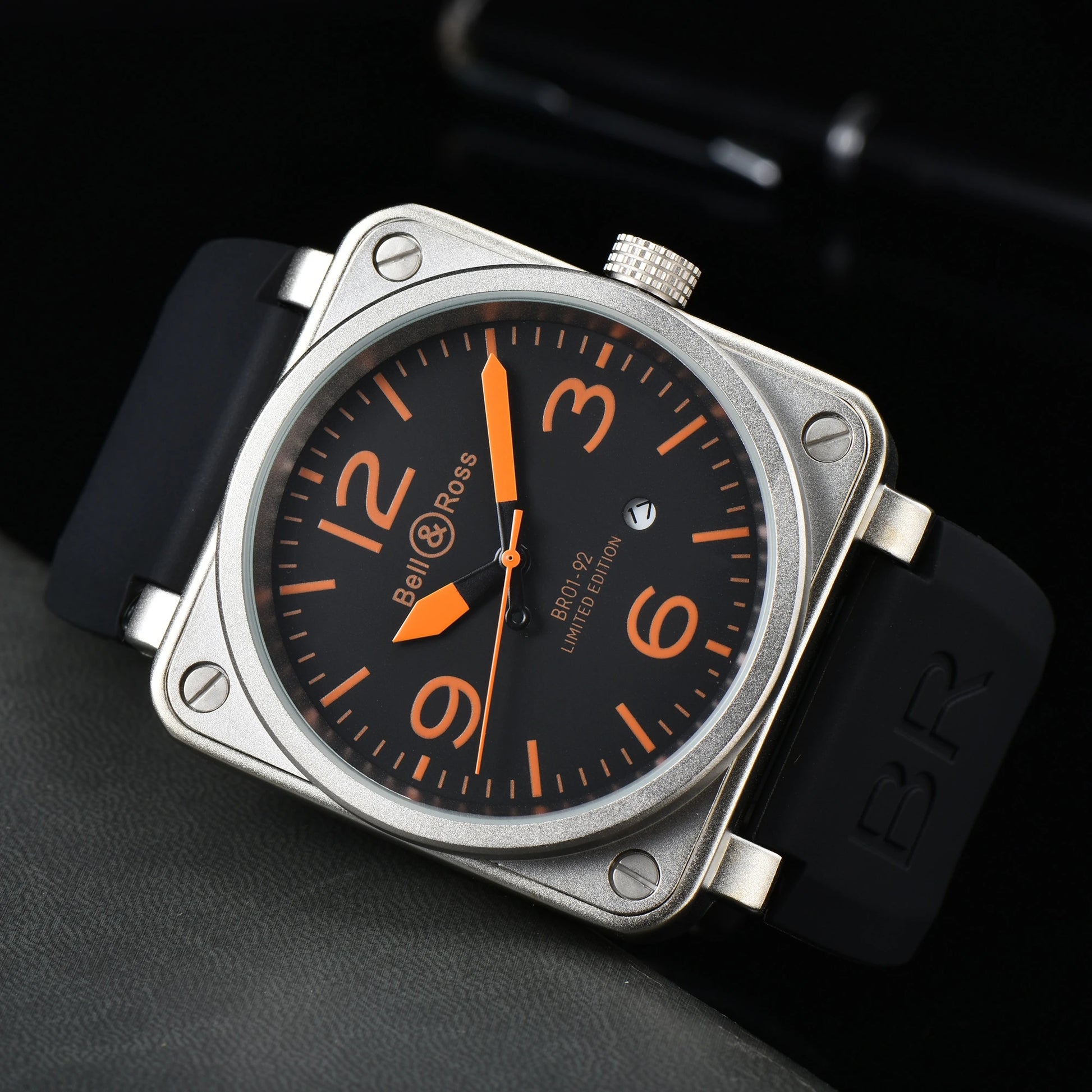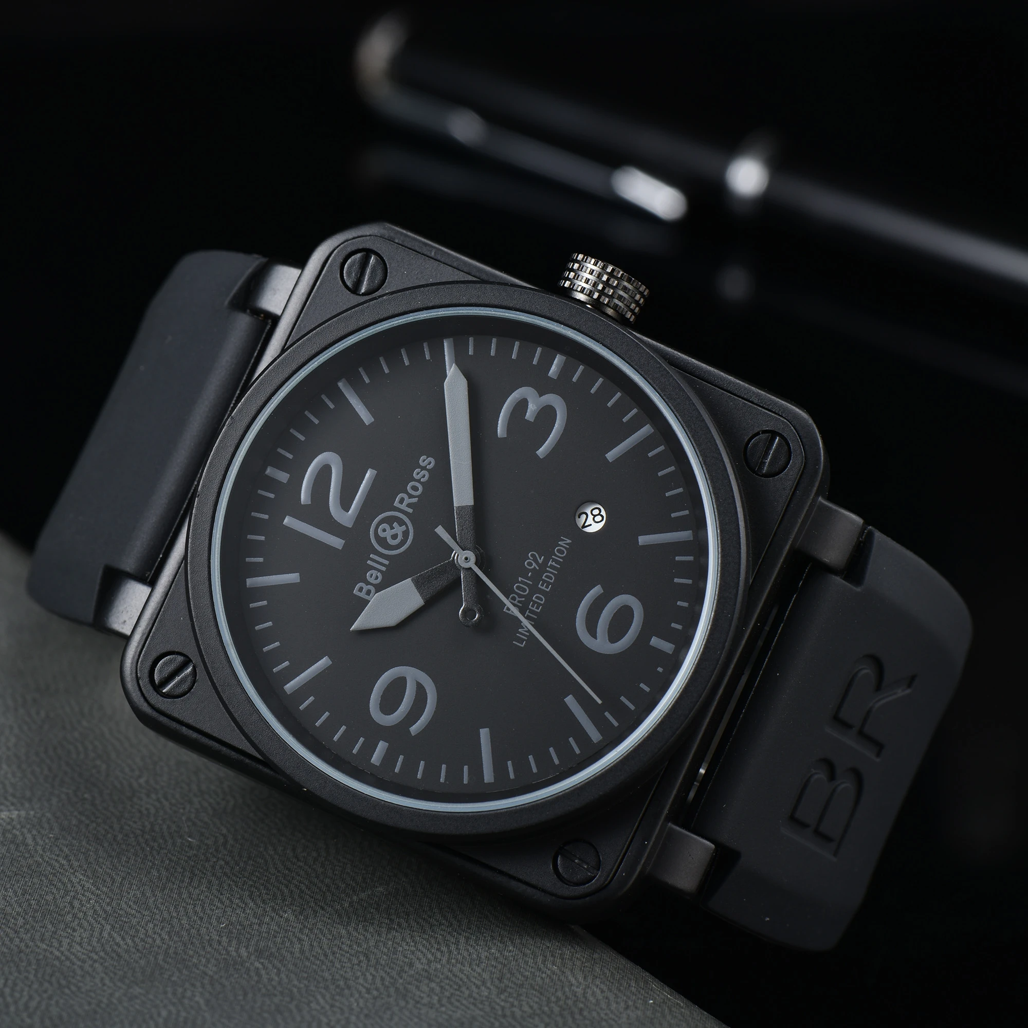 Montre m¨¦canique automatique pour homme, cuir noir Ross, caoutchouc 46mm, horloge AAA, grand cadran