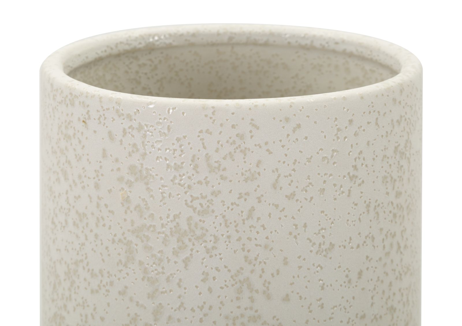 Vaso in ceramica bianca elegantemente decorato con delle sfere.