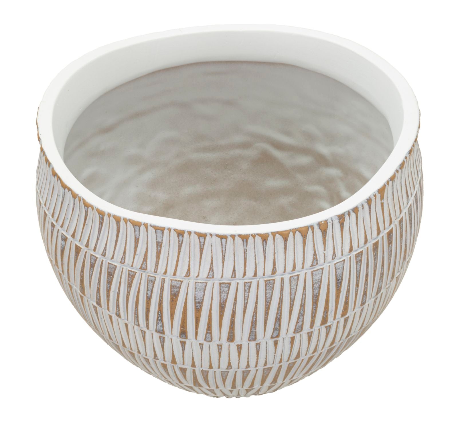 Cachepot in resina elegantemente decorato da intagli geometrici e lineari.