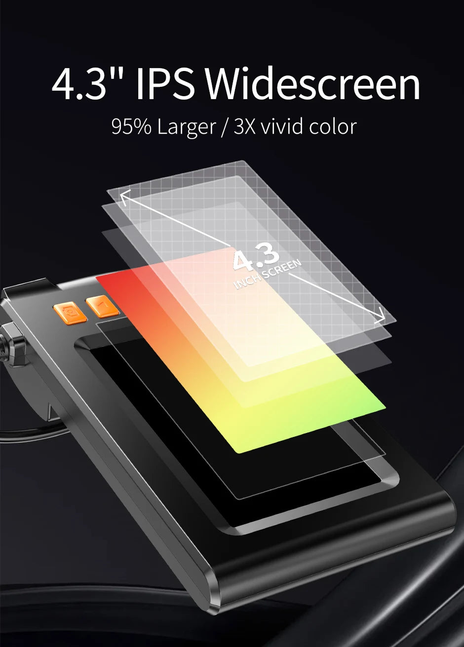 1.[Image HD 1080 p¡¿: Chaque pixel, clair et vrai. Cam¨¦ra endoscope 1080P avec ¨¦cran IPS couleur de 4.3 pouces vous offre une exp¨¦rience visuelle plus grande et plus claire. L'image atteint une r¨¦solution de 1920x1080.