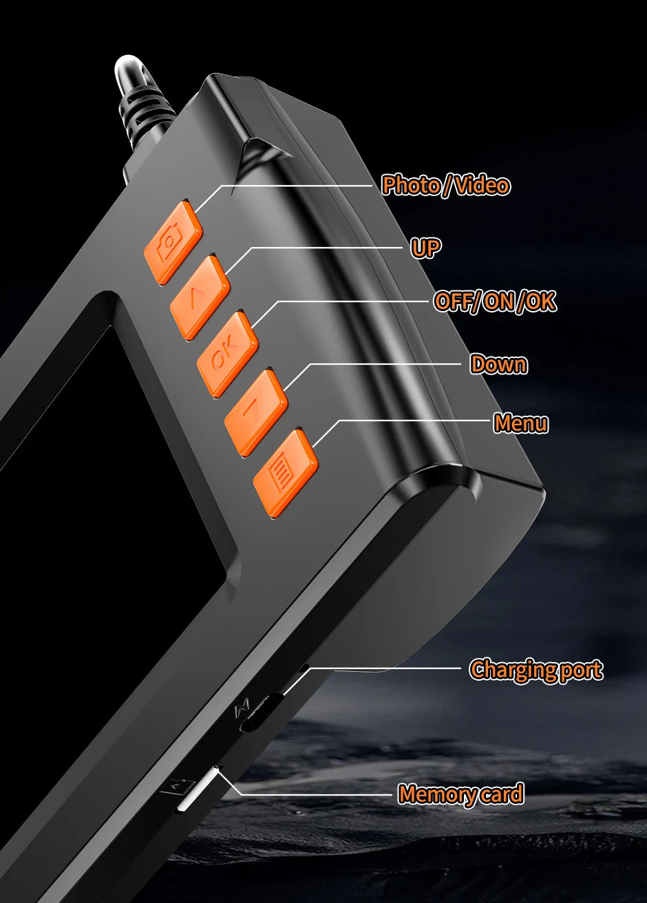 3.¡¾Cam¨¦ra serpent de haute qualit¨¦¡¿: ¨¦tanche IP67, 8 lumi¨¨res LED r¨¦glables pour assurer une image claire m¨ºme dans des conditions sombres. La meilleure distance de mise au point (3cm-10cm) rend l'image plus claire. Avec le cable semi-rigide est rigide et flexible. Batterie rechargeable, une charge compl¨¨te peut fonctionner jusqu'¨¤ 3-4 heures.