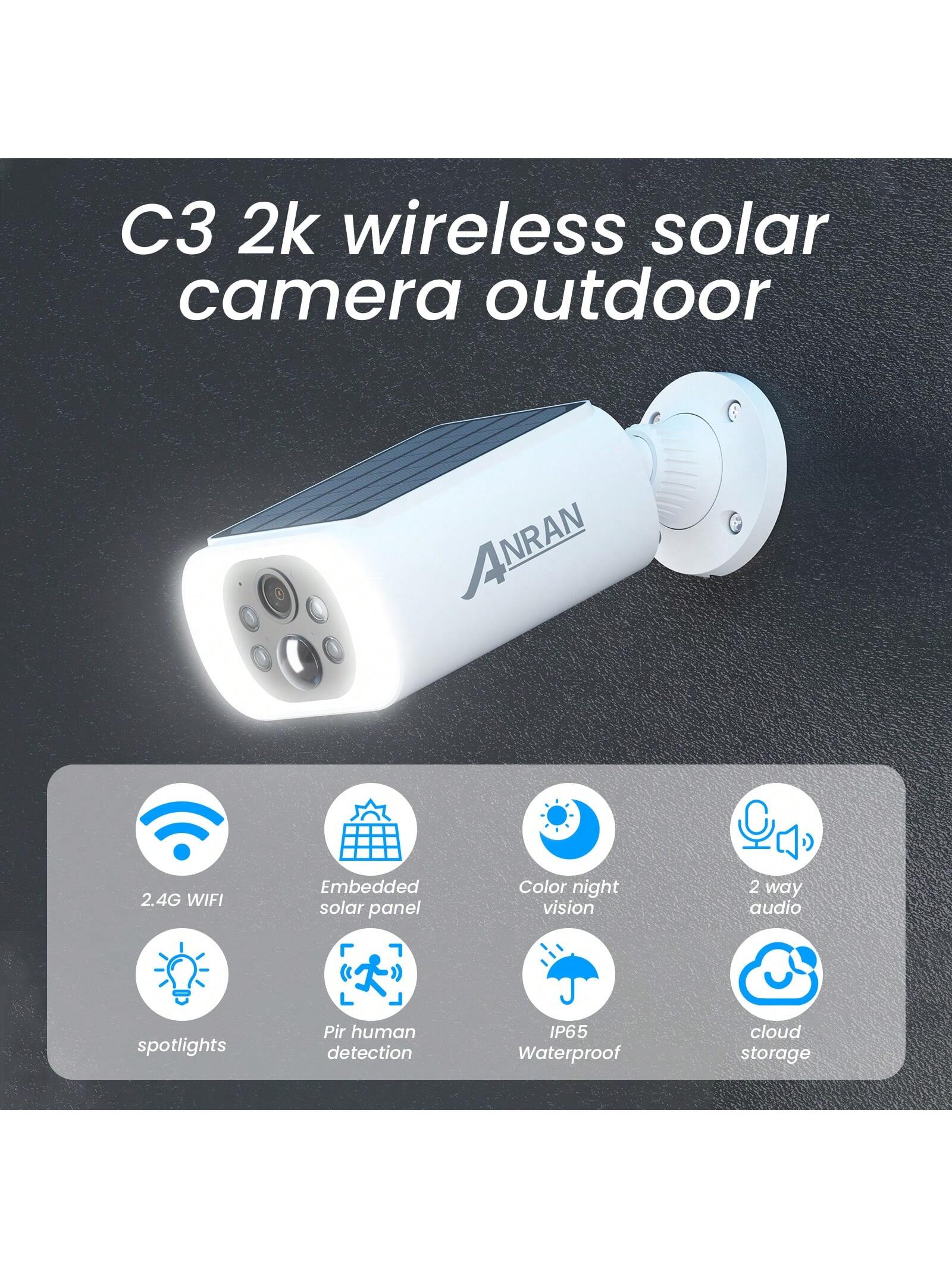 Cam¨¦ras de s¨¦curit¨¦ solaires ext¨¦rieures sans fil, cam¨¦ra ext¨¦rieure de surveillance WiFi 2K pour la s¨¦curit¨¦ de la maison avec panneau solaire int¨¦gr¨¦, vision nocturne couleur, conversation bidirectionnelle, ¨¦tanche IP67, fonctionne avec Alexa