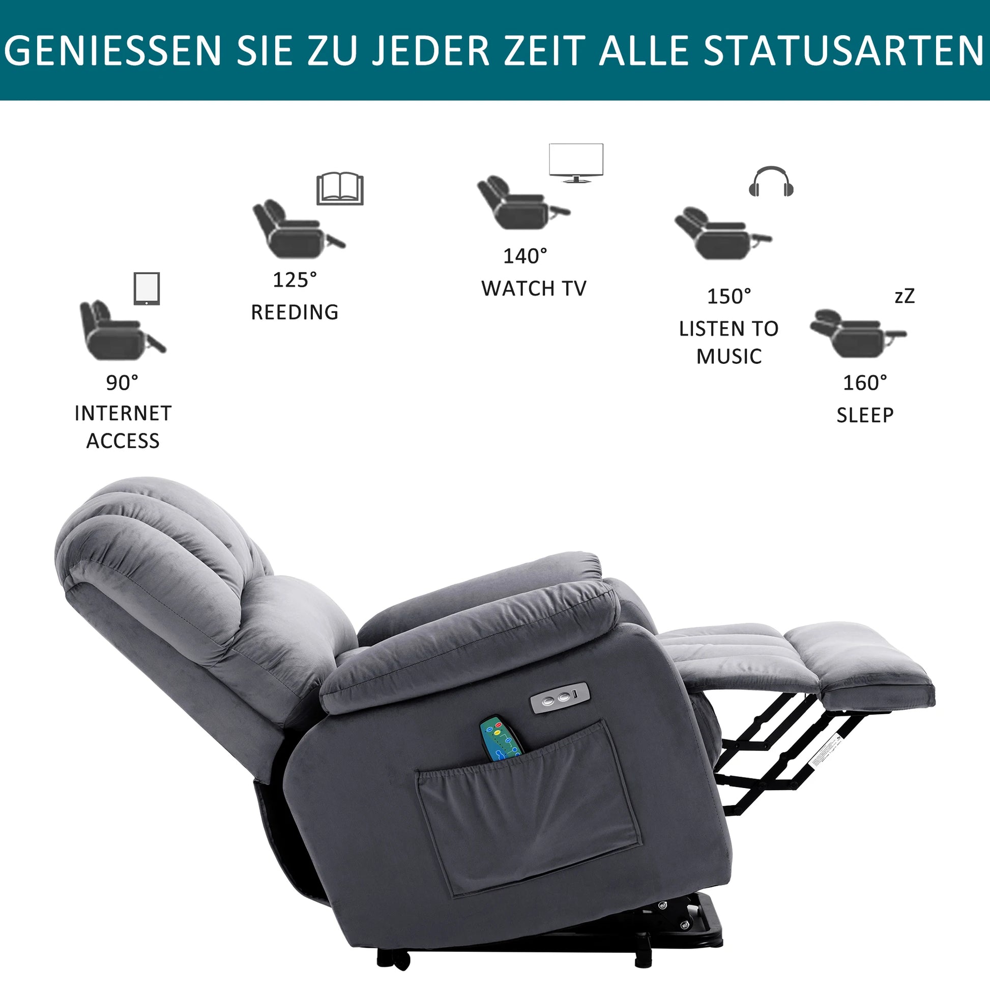 Fauteuil inclinable stable et puissant: le style moderne et la fonctionnalit¹È sont combin¹Ès avec un seul moteur et un m¹Ècanisme robuste qui s'incline ou se soulõ¹ve et s'incline en position debout, qui peut ÄÇtre continuellement ajust¹È ½Ç n'importe quelle position individuelle pour une exp¹Èrience de relaxation ultime. Il est ¹Ègalement livr¹È avec une poche lat¹Èrale pour les magazines, les livres et les t¹Èl¹Ècommandes, ce qui signifie qu'une fois install¹È, vous n'aurez plus ½Ç vous soucier de trouver quelque chose ½Ç boire ou d'allumer la t¹Èl¹Èvision.