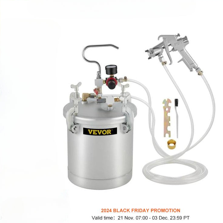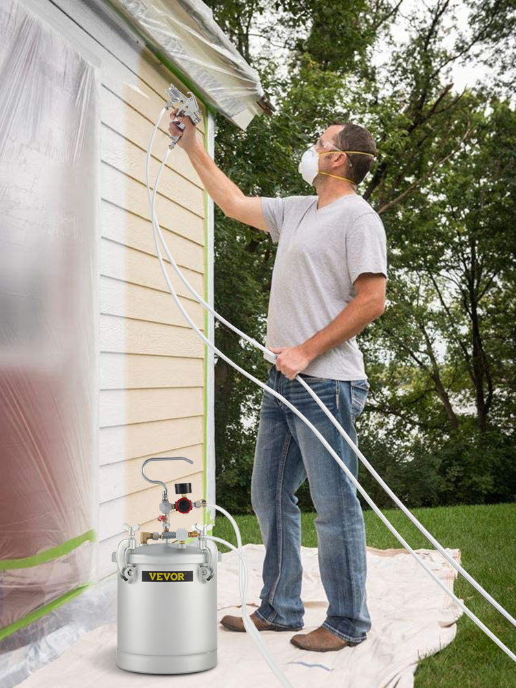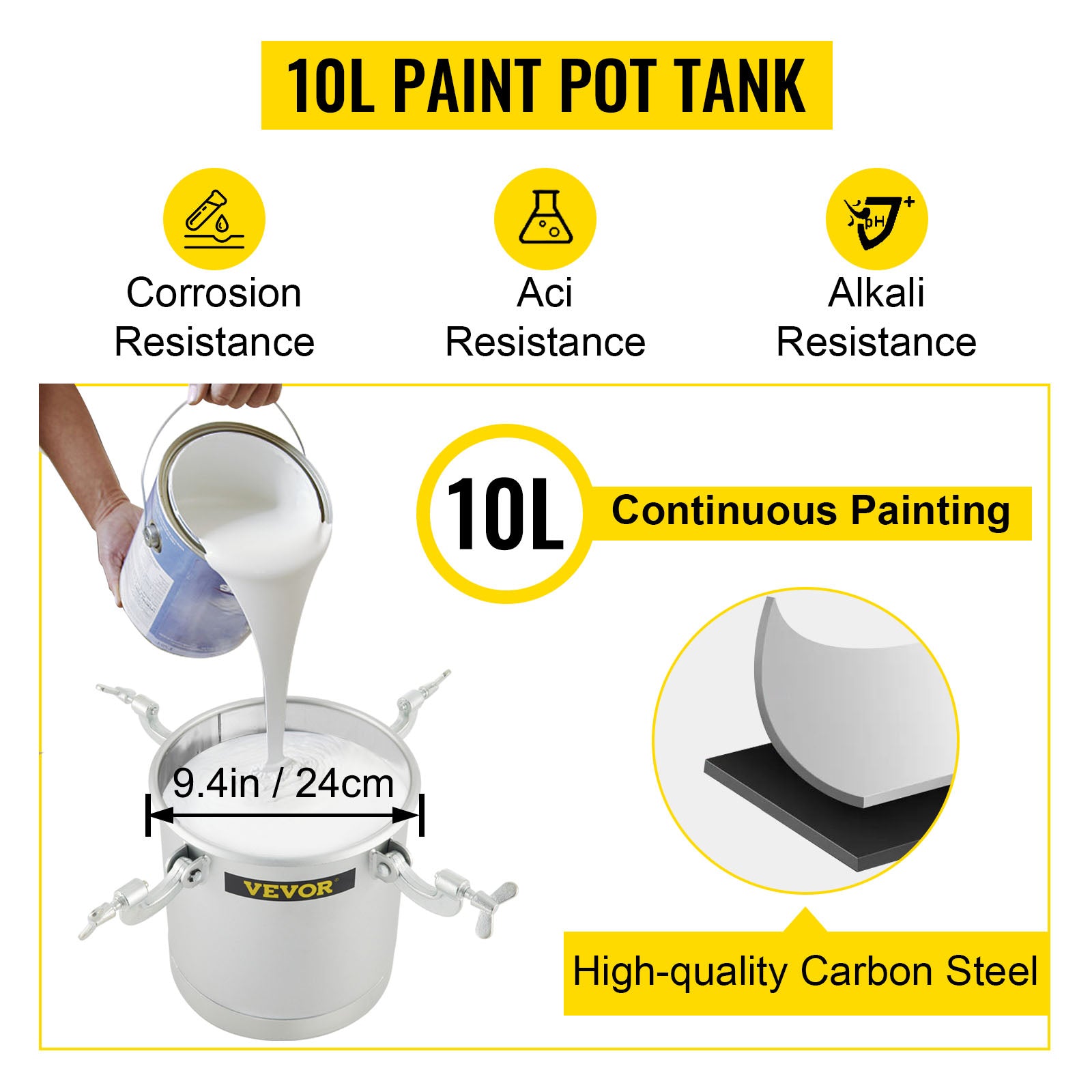 - R¨¦servoir sous pression de peinture commercial de 10 L est livr¨¦ avec pistolet du pulv¨¦risateur et ensemble de tuyau d'air et de liquide. Le pot de pulv¨¦risation vous offre l'avantage de stocker un grand volume de peinture qui peut ¨ºtre appliqu¨¦ rapidement, ce qui vous permet d'¨¦conomiser du temps et de l'argent. Excellent pour la peinture commerciale ou les situations o¨´ une grande quantit¨¦ de pulv¨¦risation est n¨¦cessaire.