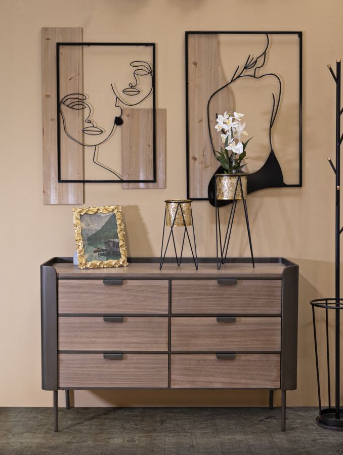 Com¨° in metallo e legno con 6 cassetti. Il particolare design dalle linee semplici ma accattivanti rende l'articolo perfetto per ogni tipologia di arredo. Gambe da assemblare.
