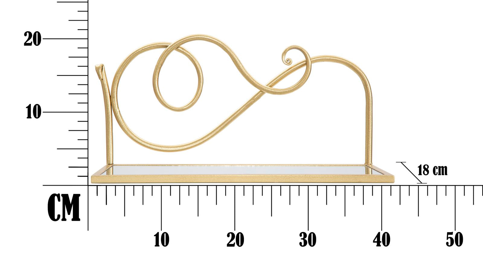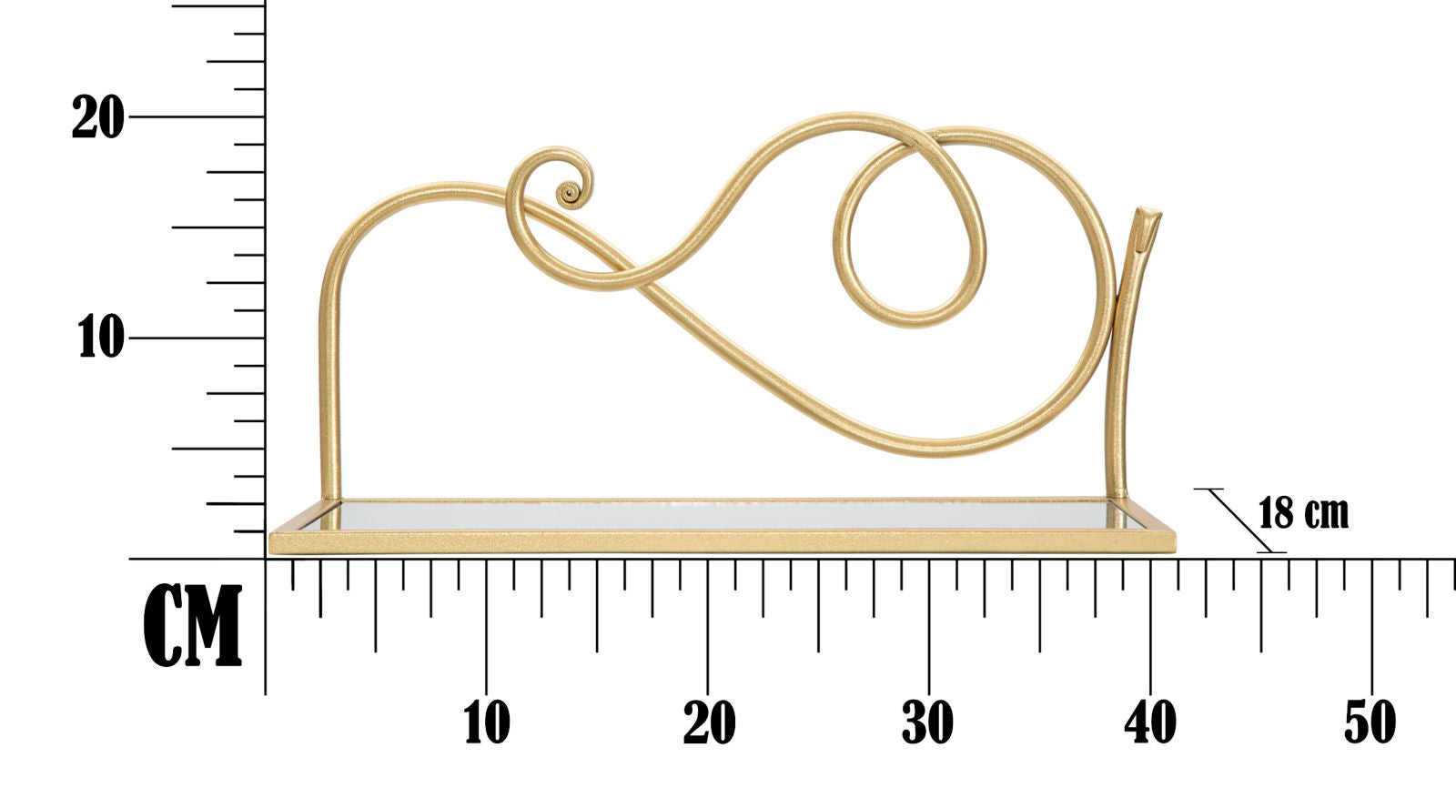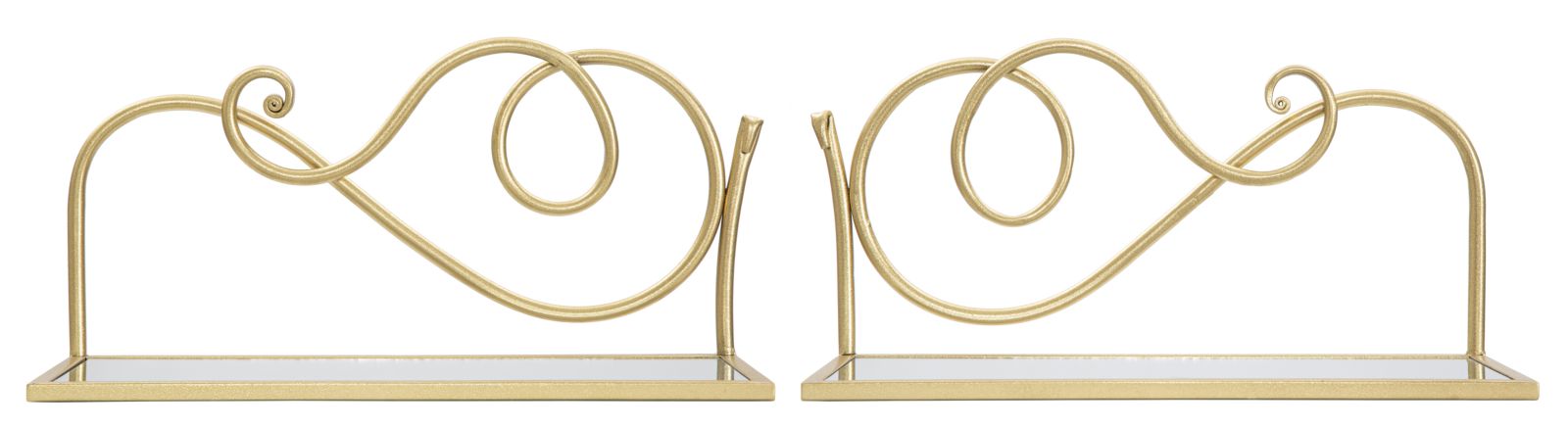 Elegante coppia di mensole da parete in metallo dorato con ripiano in vetro a specchio dalle linee morbide e sinuose. Il metallo color oro dona un tocco di classe ad ogni ad ogni ambiente glam. Le linee geometriche e arrotondate si sposano perfettamente con ogni tipo di arredo.