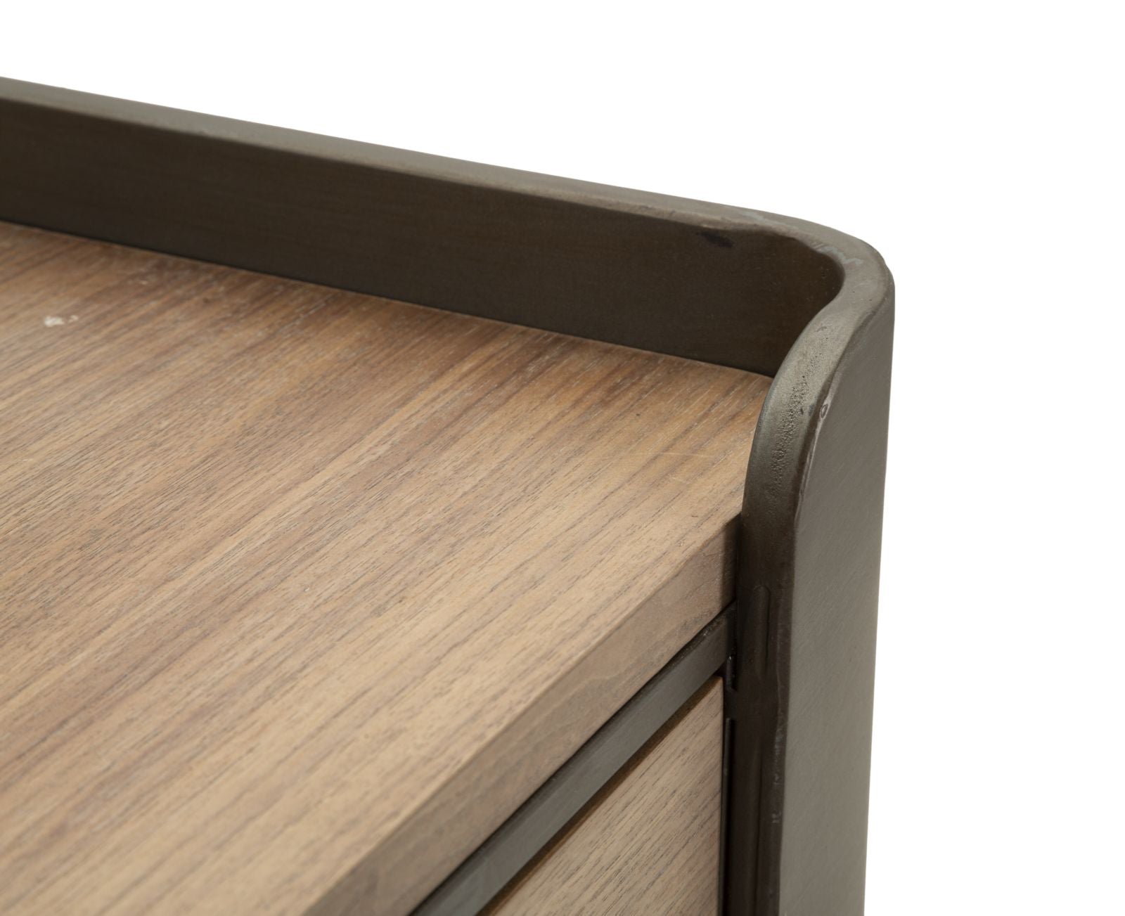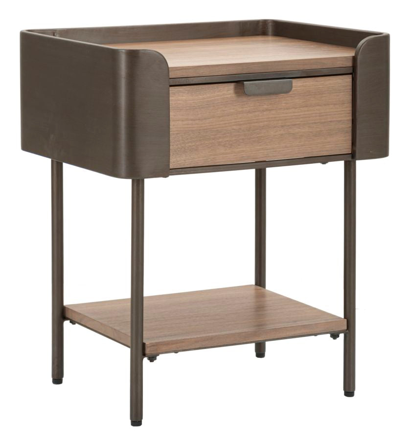 Comodino in metallo e legno con cassetto e ripiano. Il particolare design dalle linee semplici ma accattivanti rende l'articolo perfetto per ogni tipologia di arredo. Prodotto da assemblare.
