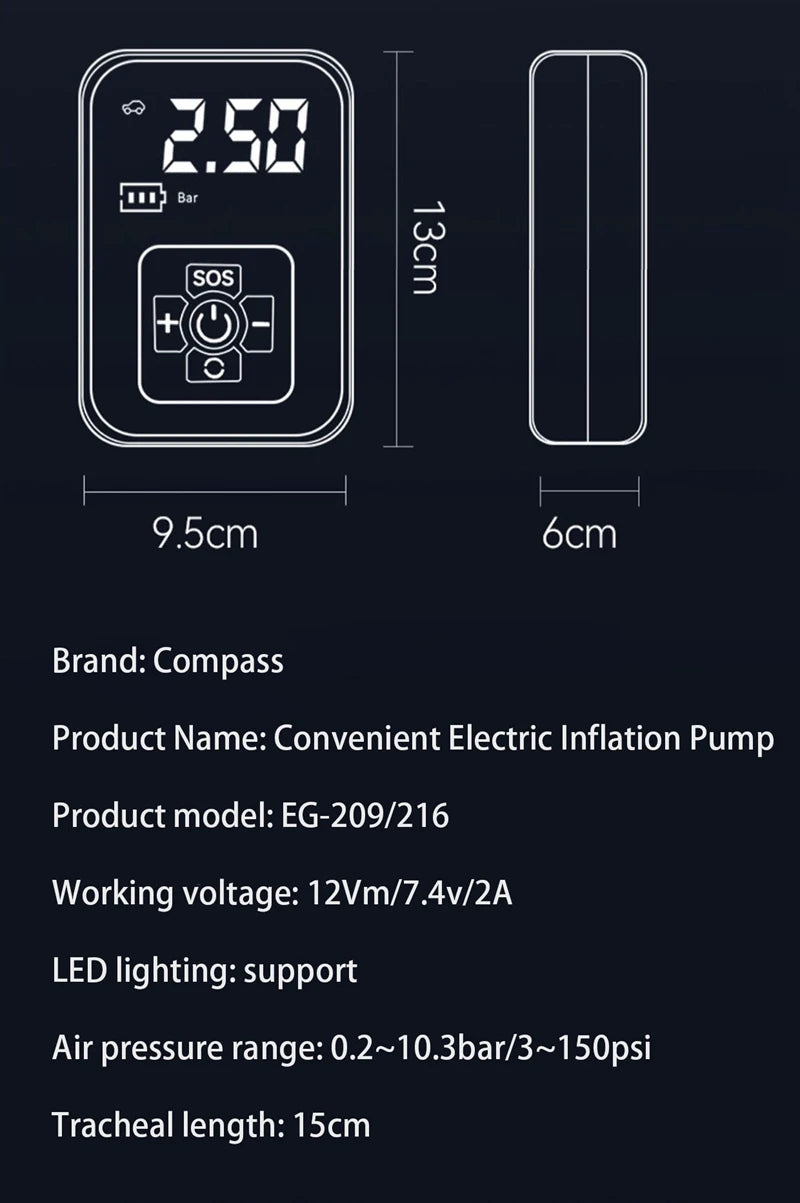 Compresseur d'air ¨¦lectrique sans fil pour voiture, pompe de gonflage pour moto, v¨¦lo, bateau, auto