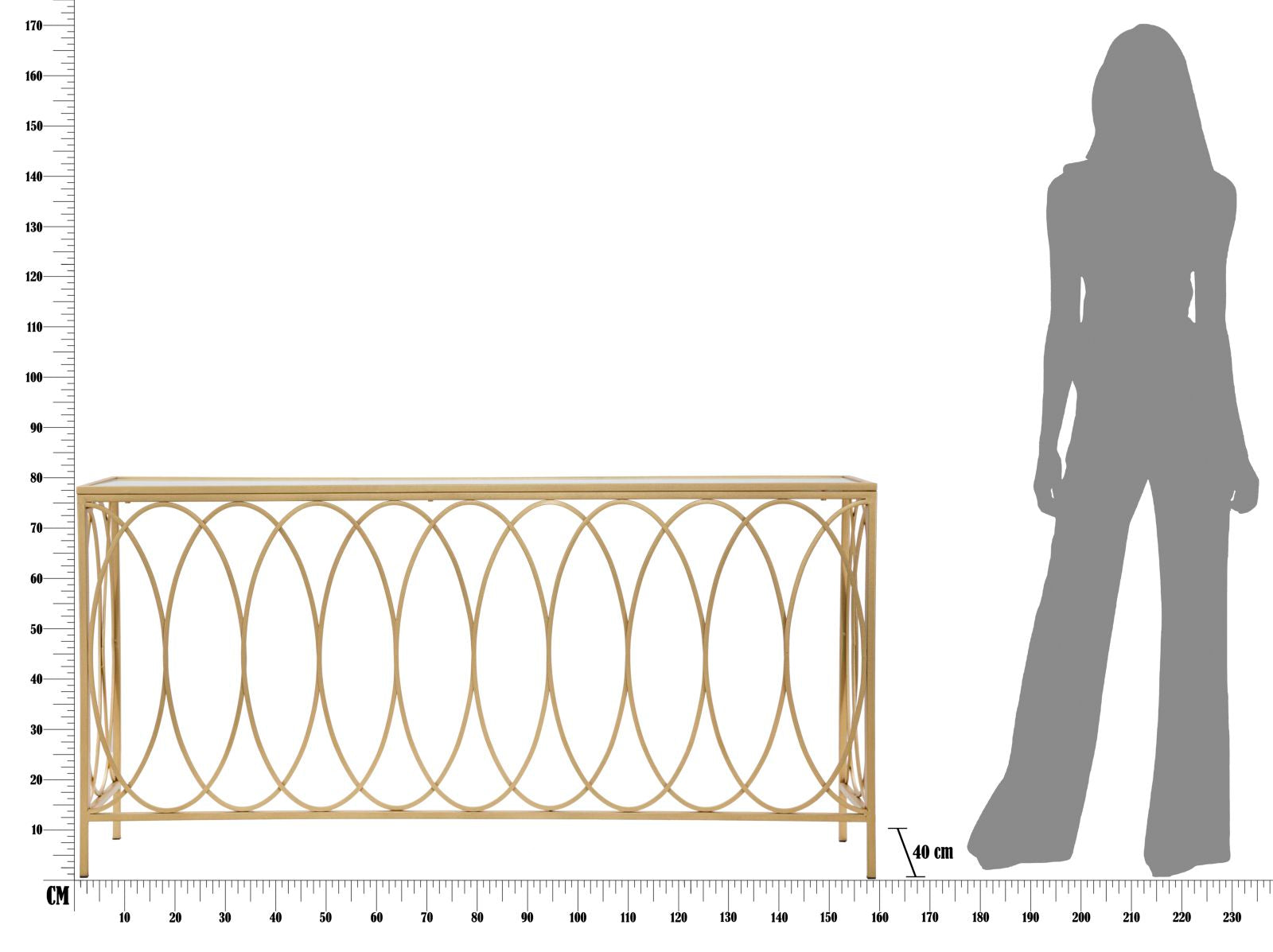 Console rettangolare in metallo dorato e piano in vetro a specchio marmorizzato dalle linee morbide e semplici. Il metallo color oro dona un tocco di classe ad ogni ambiente glam. Le linee semplici e geometriche si sposano perfettamente con ogni tipo di arredo.
