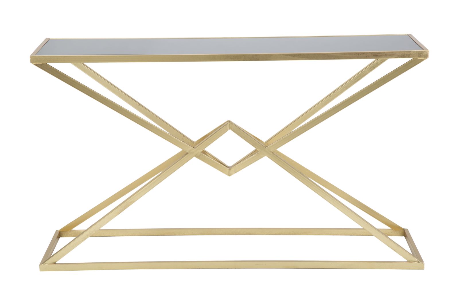 Console rettangolare in metallo dorato e vetro temprato nero dalle linee geometriche e ipnotiche. Il dorato abbinato al nero crea un forte impatto. Un elemento lussuoso e glam per la tua casa. Elementi d'arredo che ricordano i lussuosi ambienti dell'Hotel Plaza di New York. Ricrea l'atmosfera magica del Grande Gatsby nel tuo interior.