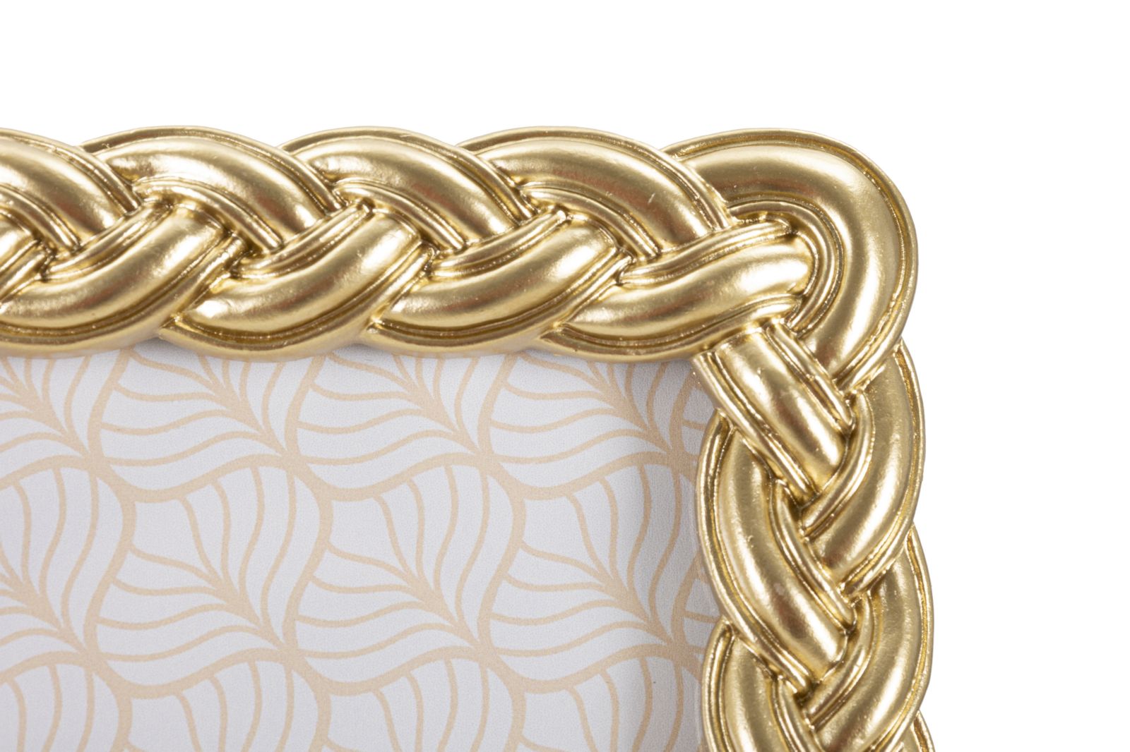 Cornice rettangolare da appoggio in resina dal design formato da un nastro intrecciato. Pu¨° essere posizionata sia in orizzontale che in verticale. Dimensioni foto cm 15x20.