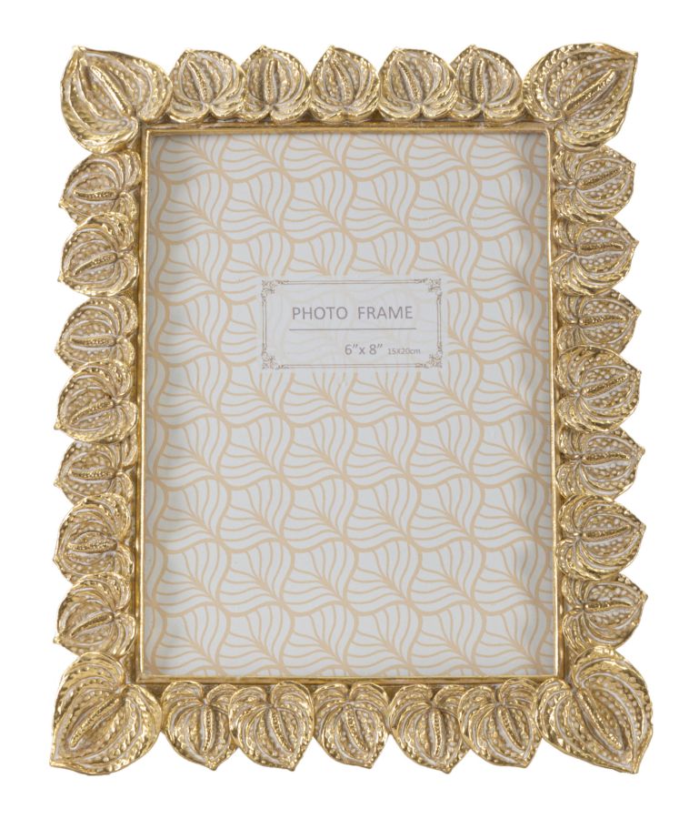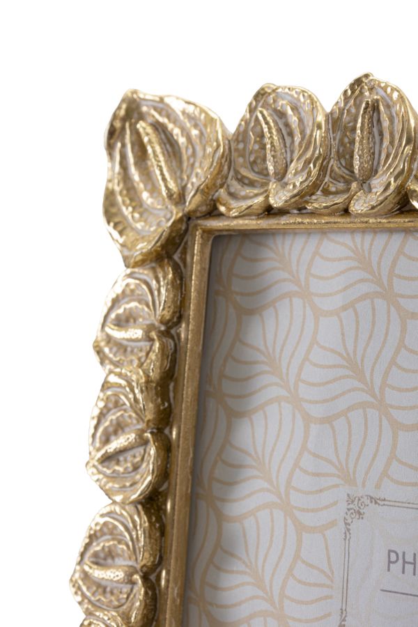 Cornice rettangolare da appoggio in resina dal design composto da un insieme di petali di fiori. Pu¨° essere posizionata sia in orizzontale che in verticale. Dimensioni foto cm 15x20.