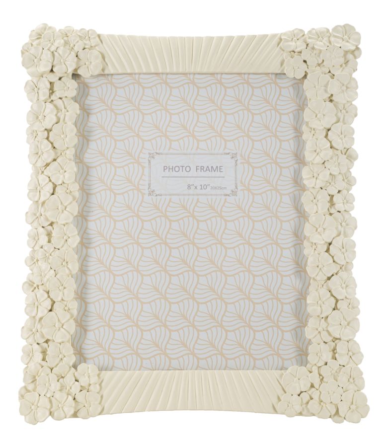 Cornice rettangolare da appoggio in resina dalle linee morbide e impreziosita da un insieme di fiorellini. Pu¨° essere posizionata sia in orizzontale che in verticale. Dimensioni foto cm 20x25.