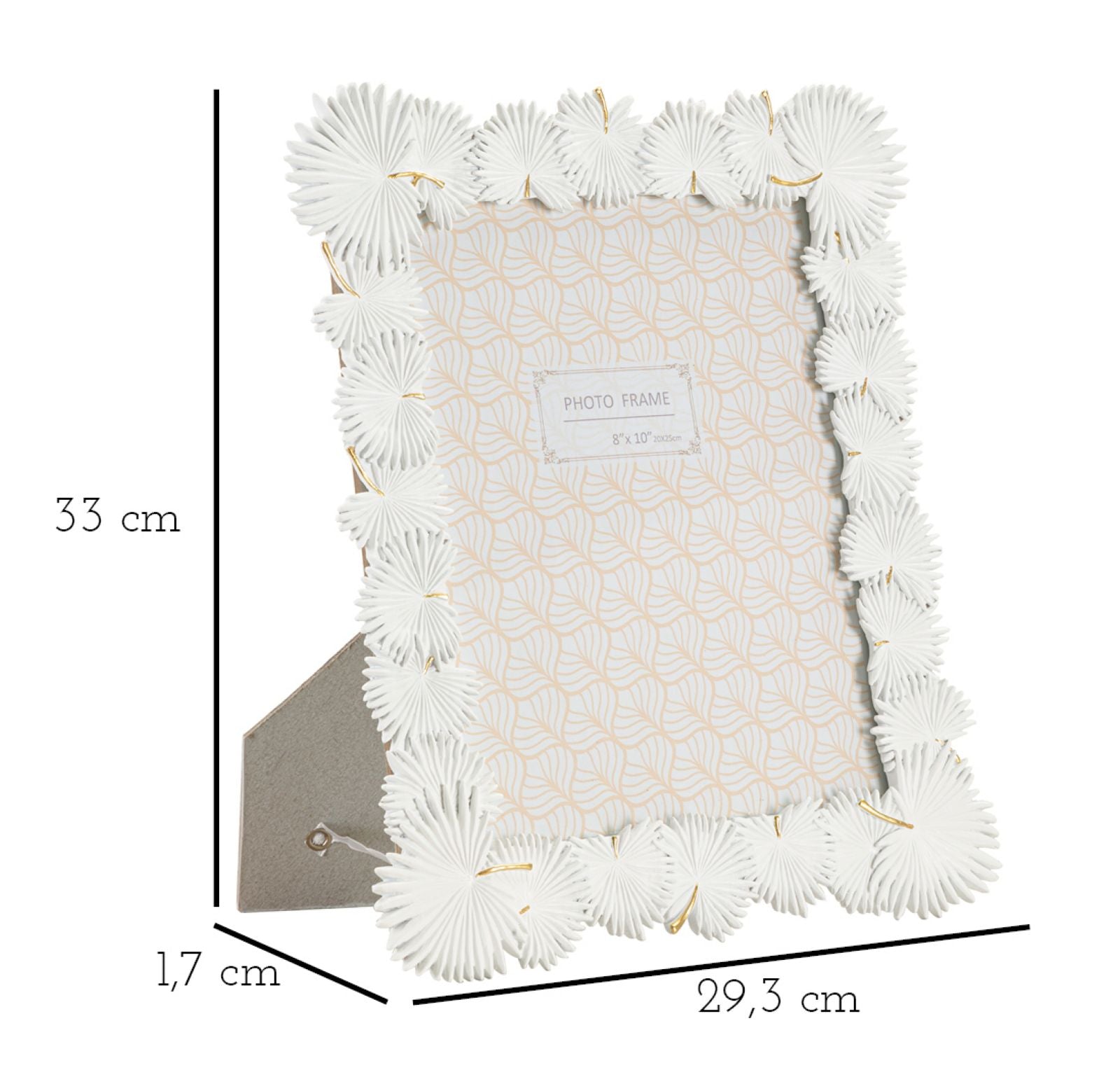Cornice rettangolare da appoggio in resina realizzata da un insieme di foglie. Pu¨° essere posizionata sia in orizzontale che in verticale. Dimensioni foto cm 20x25.