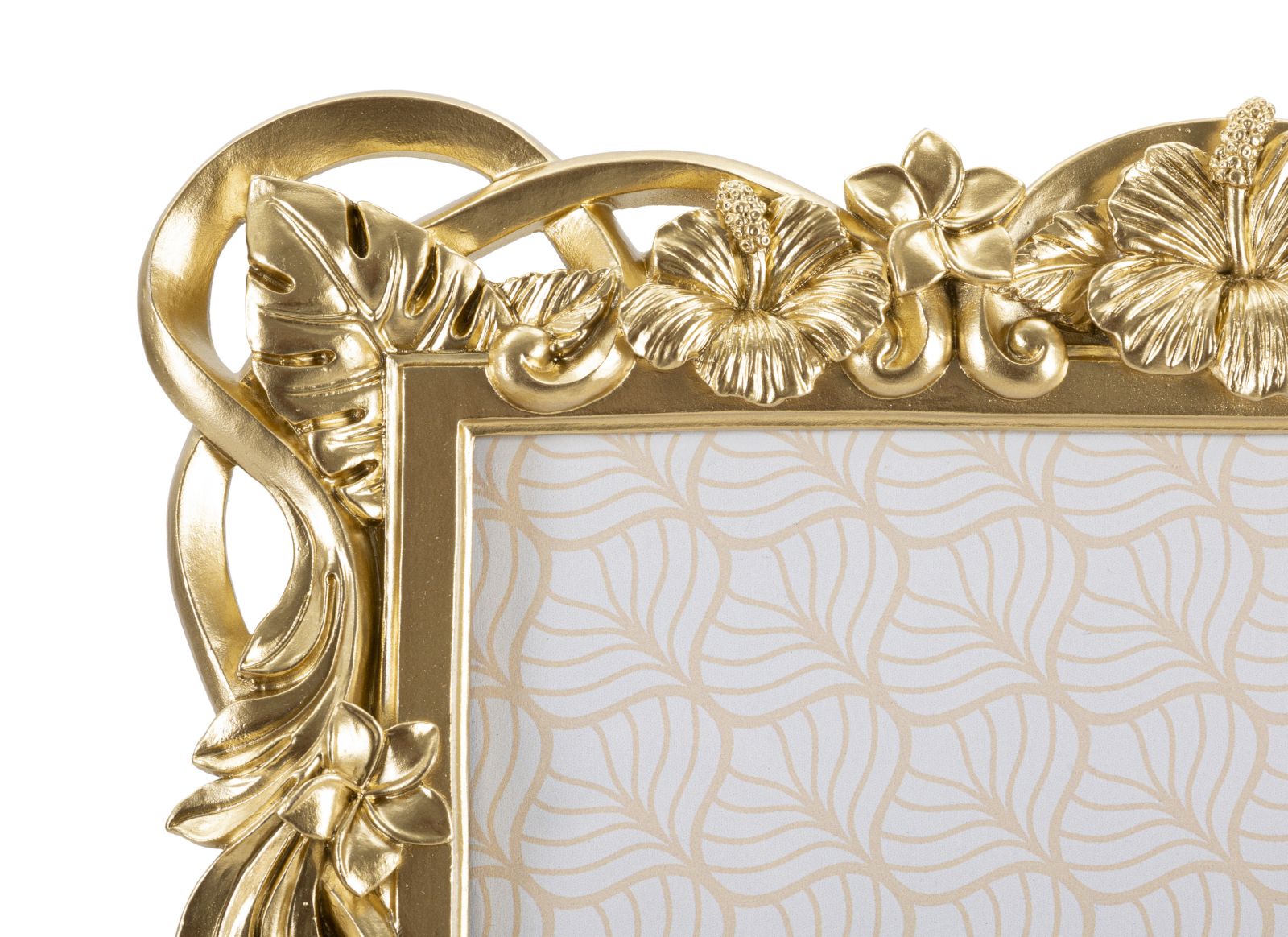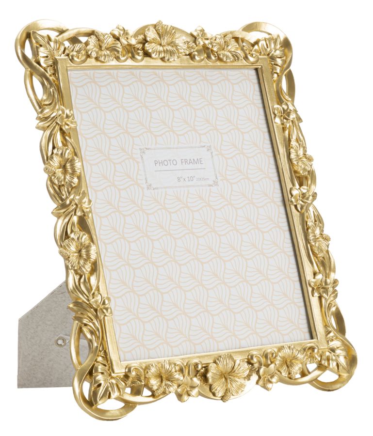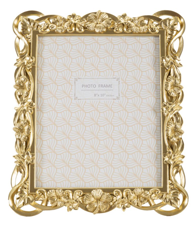 Cornice rettangolare da appoggio in resina dal design composto da un insieme di fiori e foglie. Pu¨° essere posizionata sia in orizzontale che in verticale. Dimensioni foto cm 20x25.