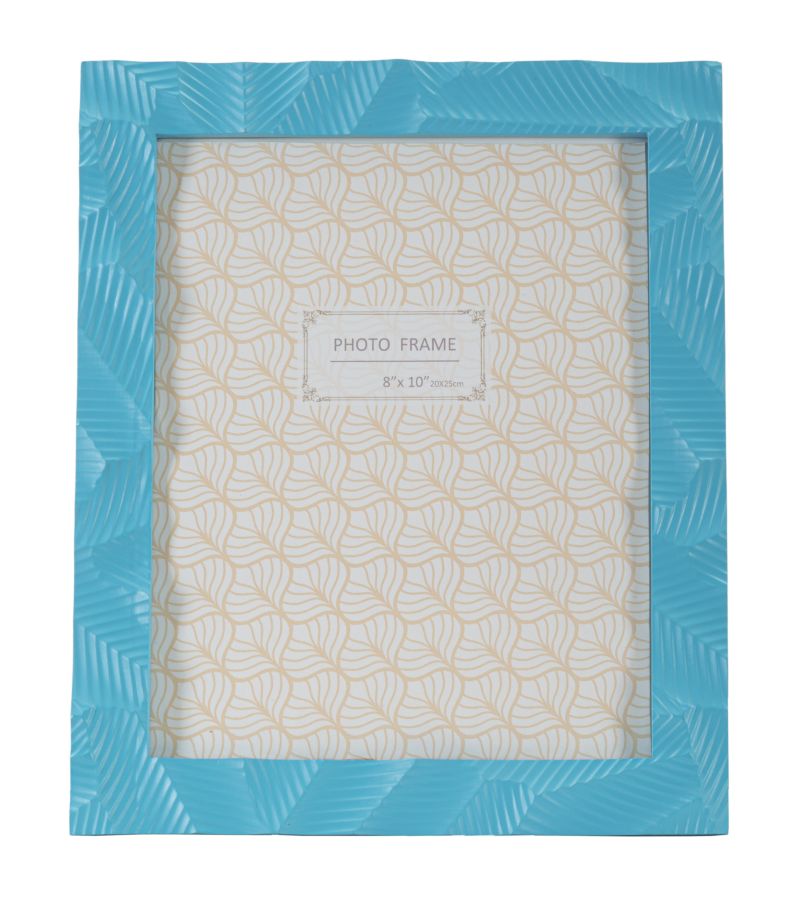 Cornice rettangolare da appoggio in resina celeste dal design semplice e geometrico. Pu¨° essere posizionata sia in orizzontale che in verticale. Dimensioni foto cm 20x25.