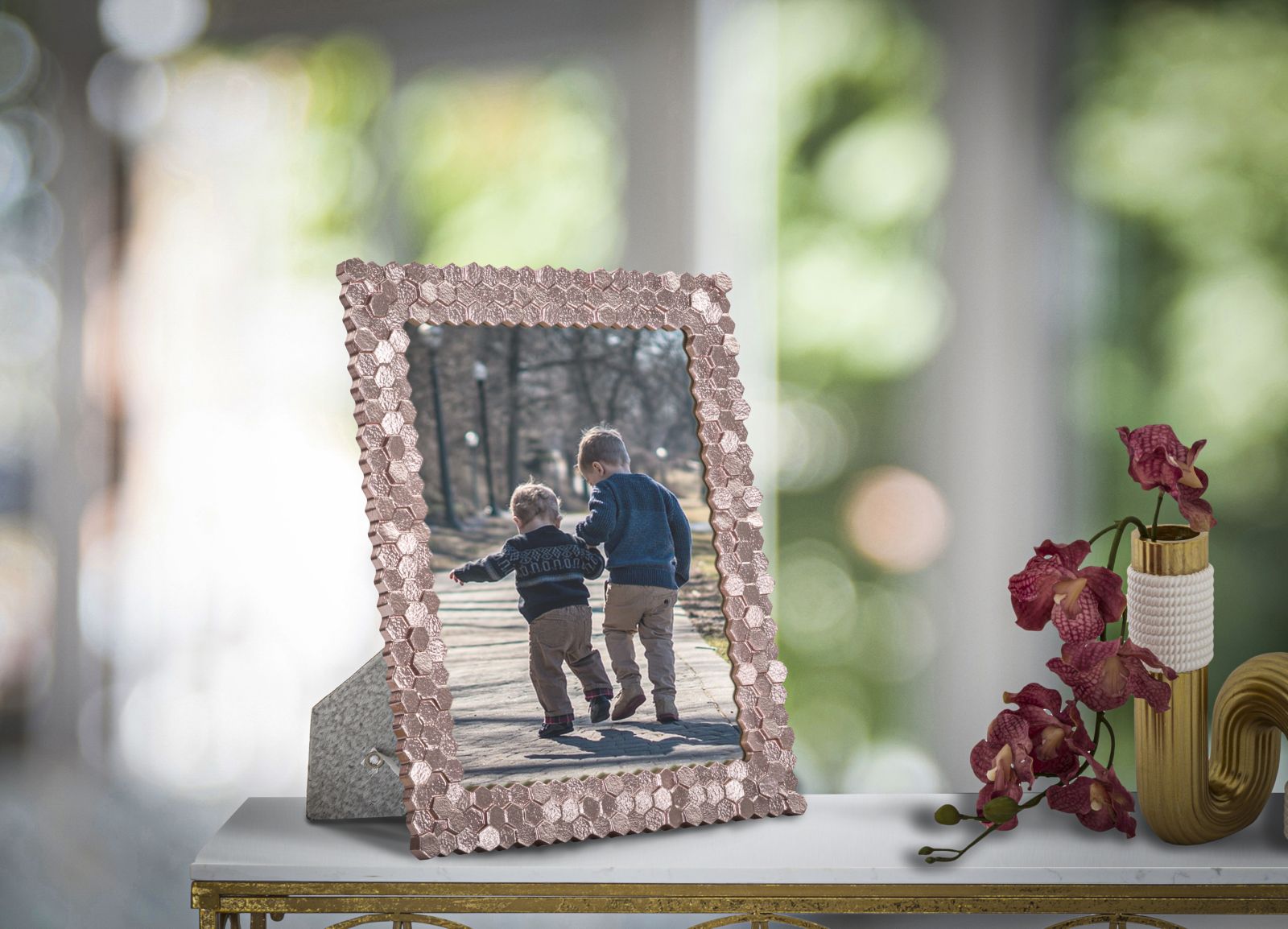 Cornice portafoto impreziosita da eleganti decorazioni geometriche. Formato foto cm 20x25