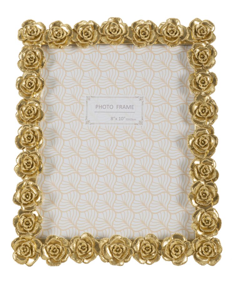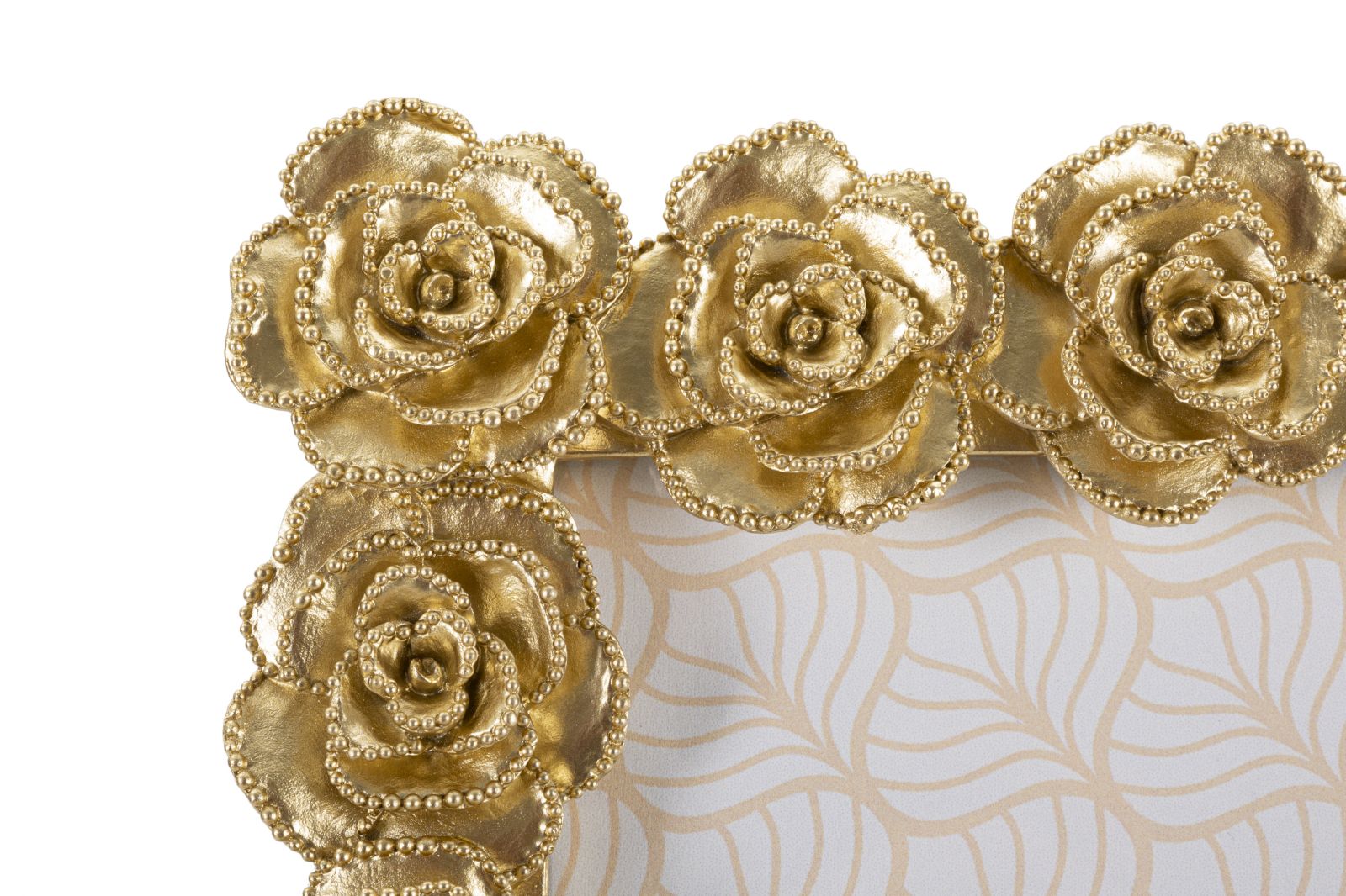Cornice rettangolare da appoggio in resina dal design composto da un insieme di rose. Pu¨° essere posizionata sia in orizzontale che in verticale. Dimensioni foto cm 20x25.