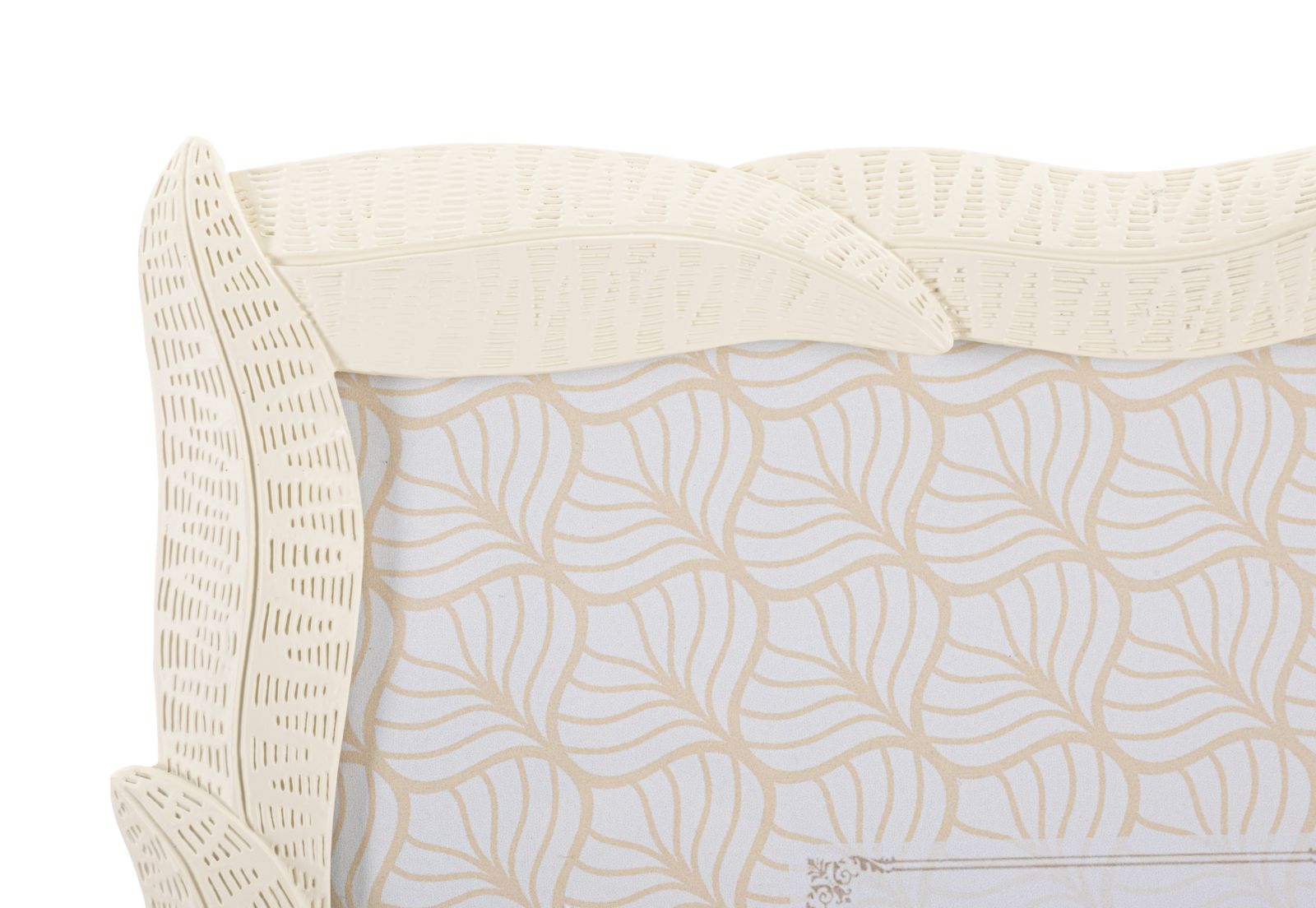 Cornice rettangolare da appoggio in resina realizzata con intrecci di foglie. Pu¨° essere posizionata sia in orizzontale che in verticale. Dimensioni foto cm 20x25.