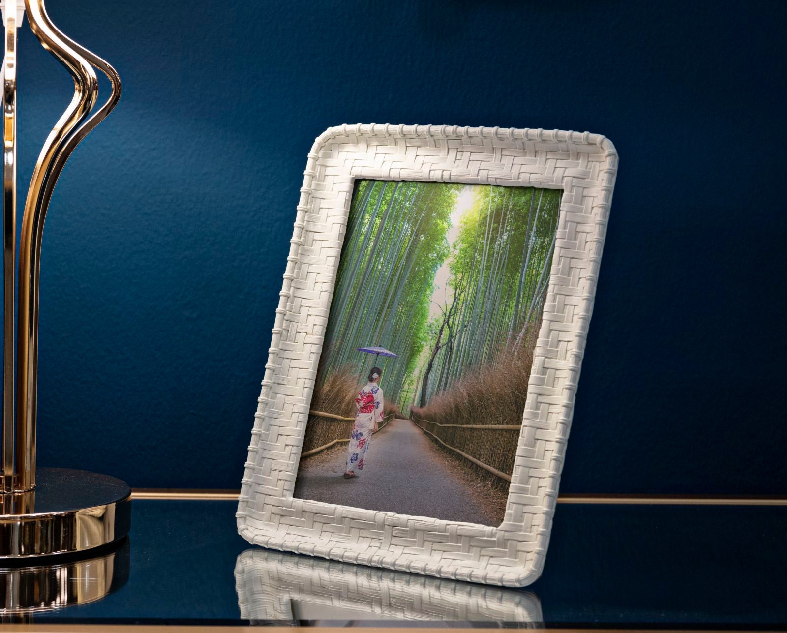 Cornice rettangolare da appoggio in resina realizzata con intrecci che richiamano il bamboo. Pu¨° essere posizionata sia in orizzontale che in verticale. Dimensioni foto cm 15x20.