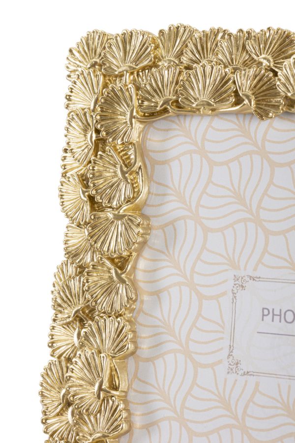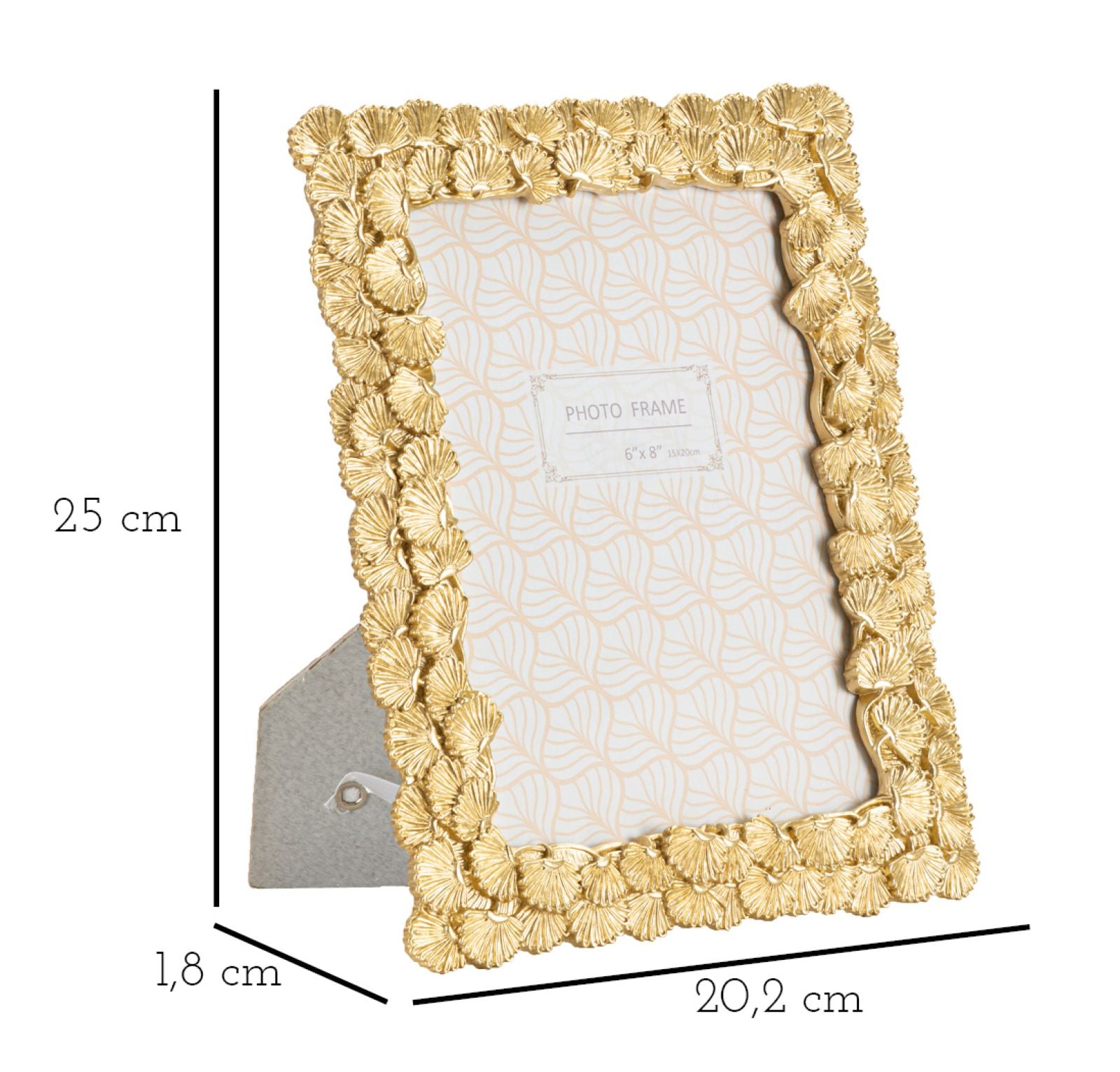 Cornice rettangolare da appoggio in resina dal design composto da un insieme di foglie. Pu¨° essere posizionata sia in orizzontale che in verticale. Dimensioni foto cm 15x20.