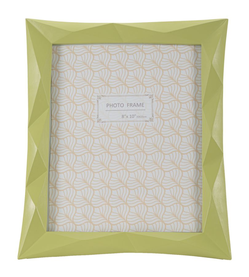 Cornice rettangolare da appoggio in resina verde dal design semplice e geometrico. Pu¨° essere posizionata sia in orizzontale che in verticale. Dimensioni foto cm 20x25.