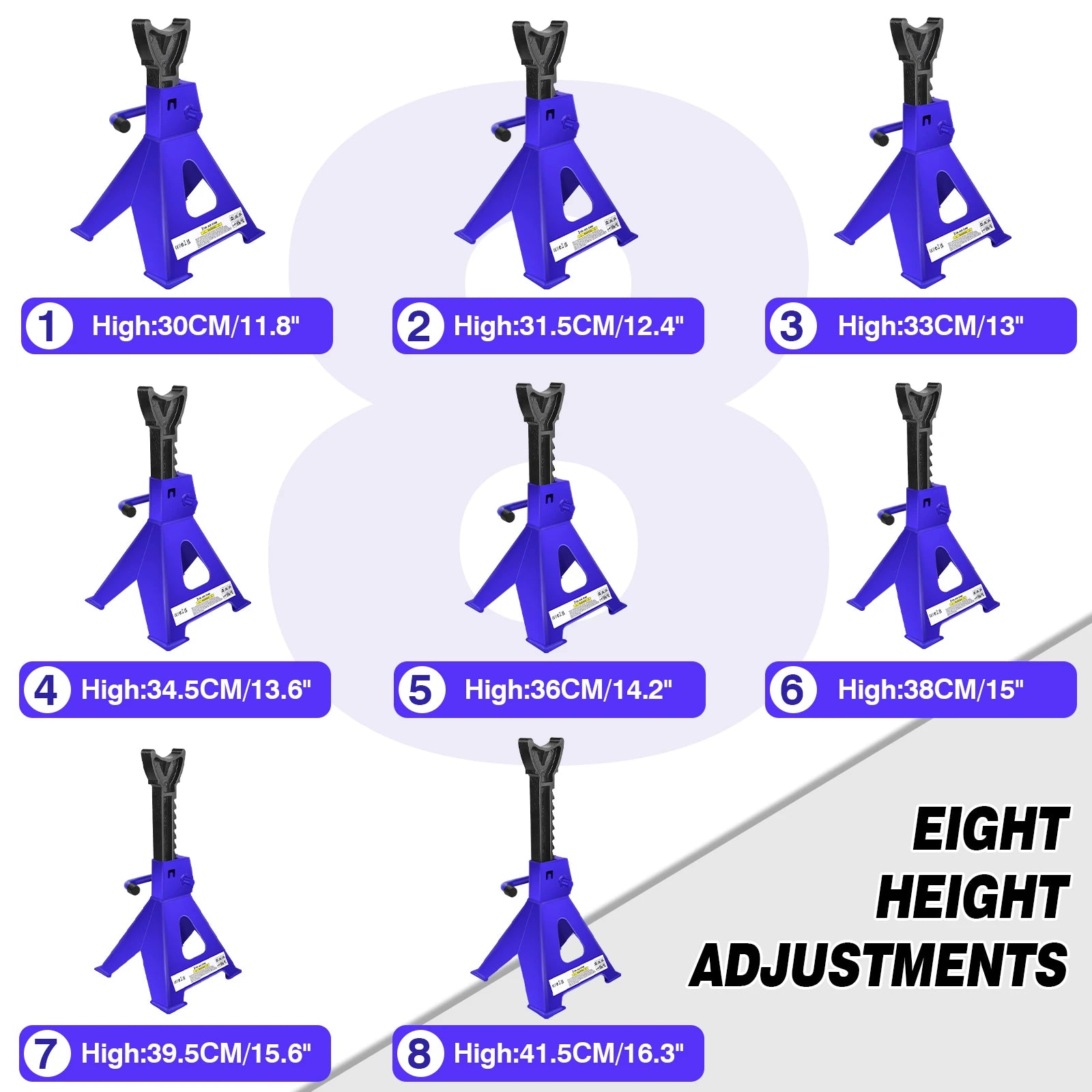 Supports d'appellation en acier pour voiture et camionnette, outil de levage de r¨¦paration, support de cric, plage r¨¦glable ¨¤ 9 ¨¦tages,290-430mm, 2 pi¨¨ces, 3