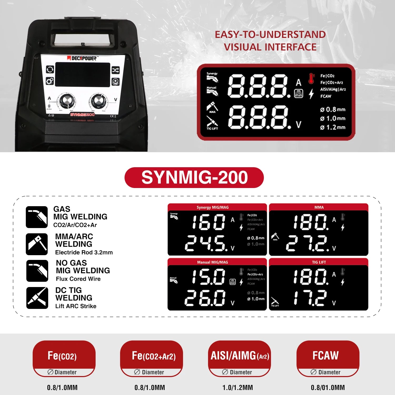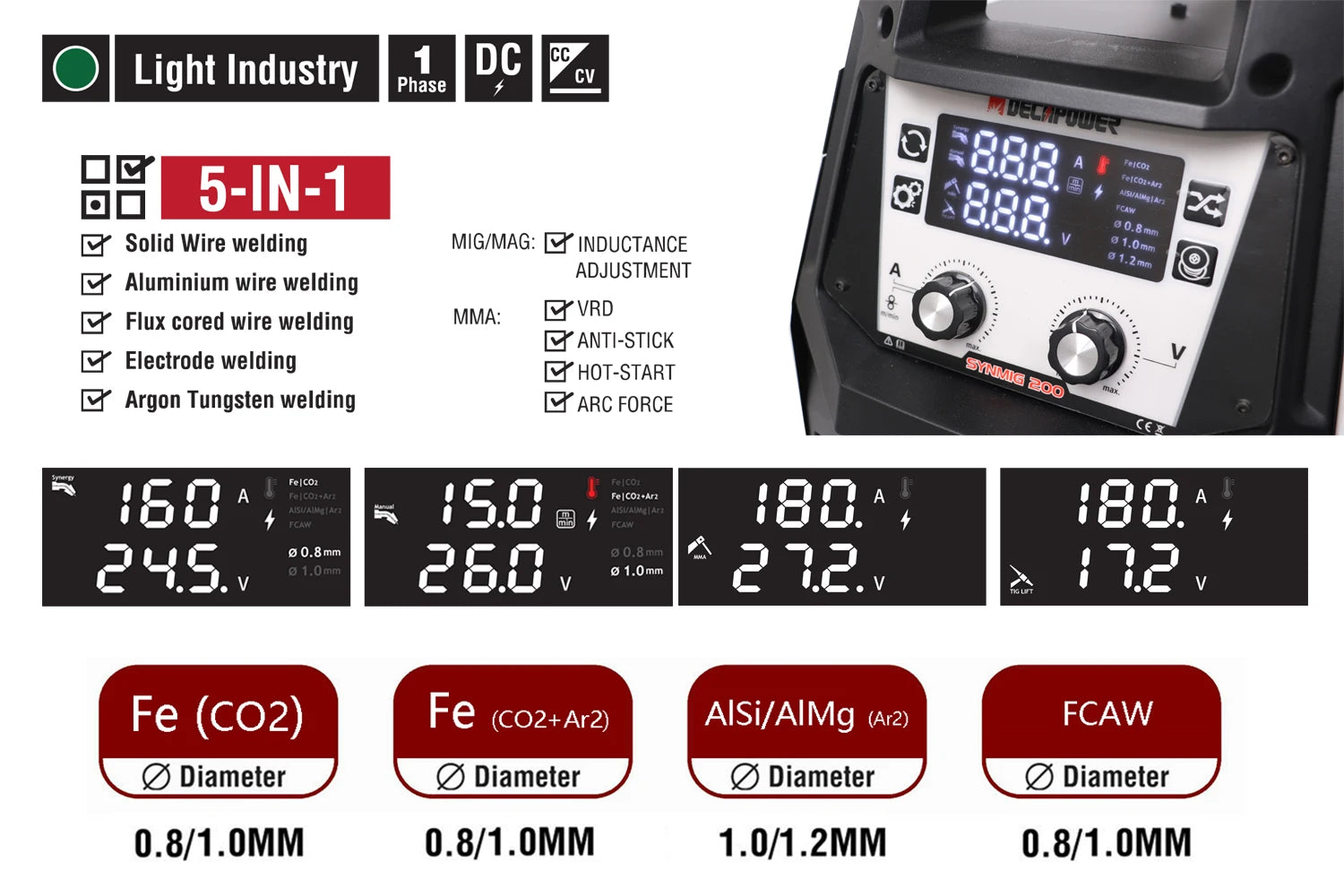 Poste ¨¤ souder semi-automatique , MMA, TIG, MIG, MAG, Flux sans gaz, 4 en 1, 200A