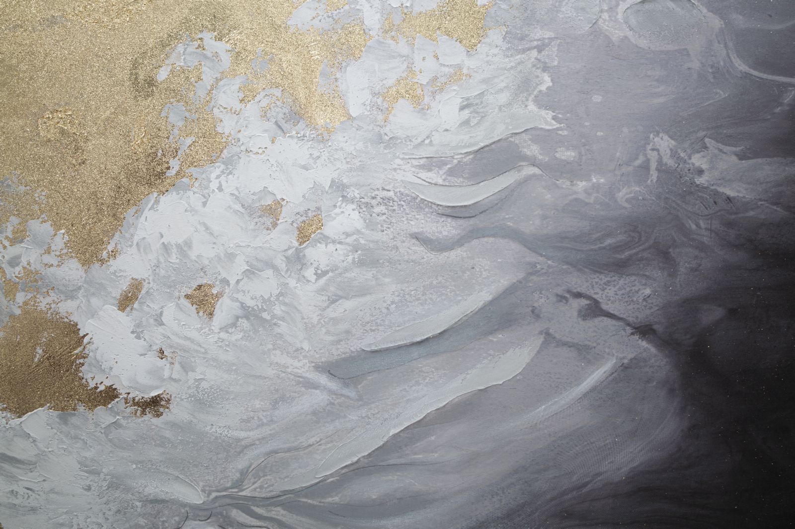 Dipinto su tela con telaio in legno. Originali dipinti astratti dalle linee ipnotiche che uniscono la brillantezza dell'oro all'eleganza dell'argento e del nero conferendo un stile unico. Un tocco d'arte direttamente a casa tua.