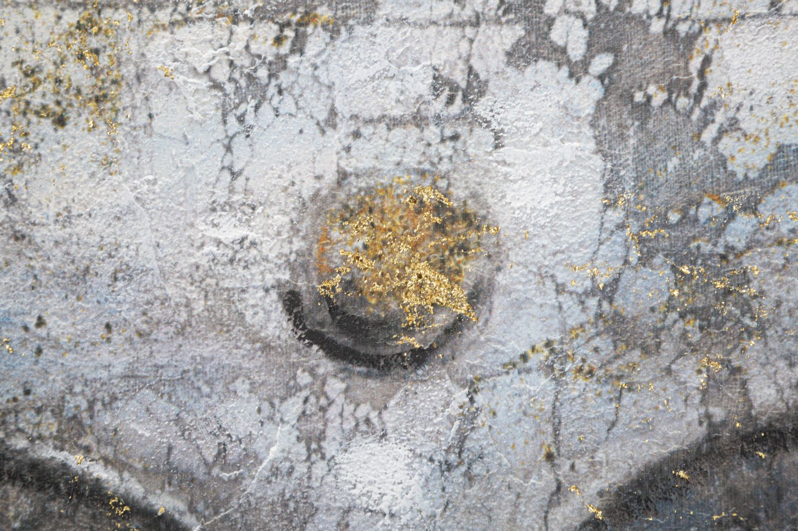 Dipinto su tela completo di telaio in legno raffigurante il volto di Buddha con eleganti applicazioni dorate.