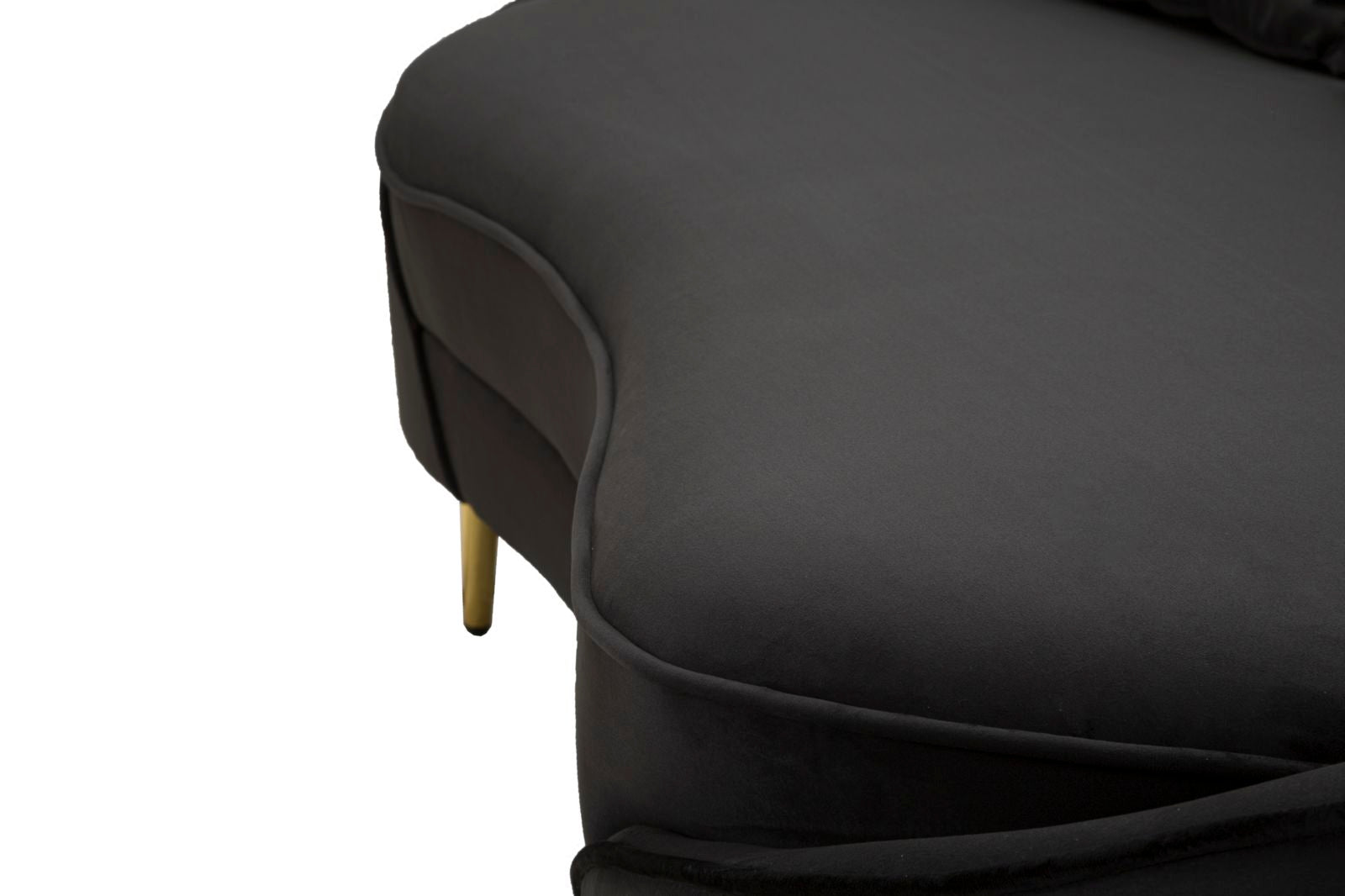 Divanetto 3 posti in tessuto imbottito nero dalle linee morbide e avvolgenti, le gambe in metallo dorato donano un tocco di classe e luminosit¨¤. Completo di 3 cuscini.
