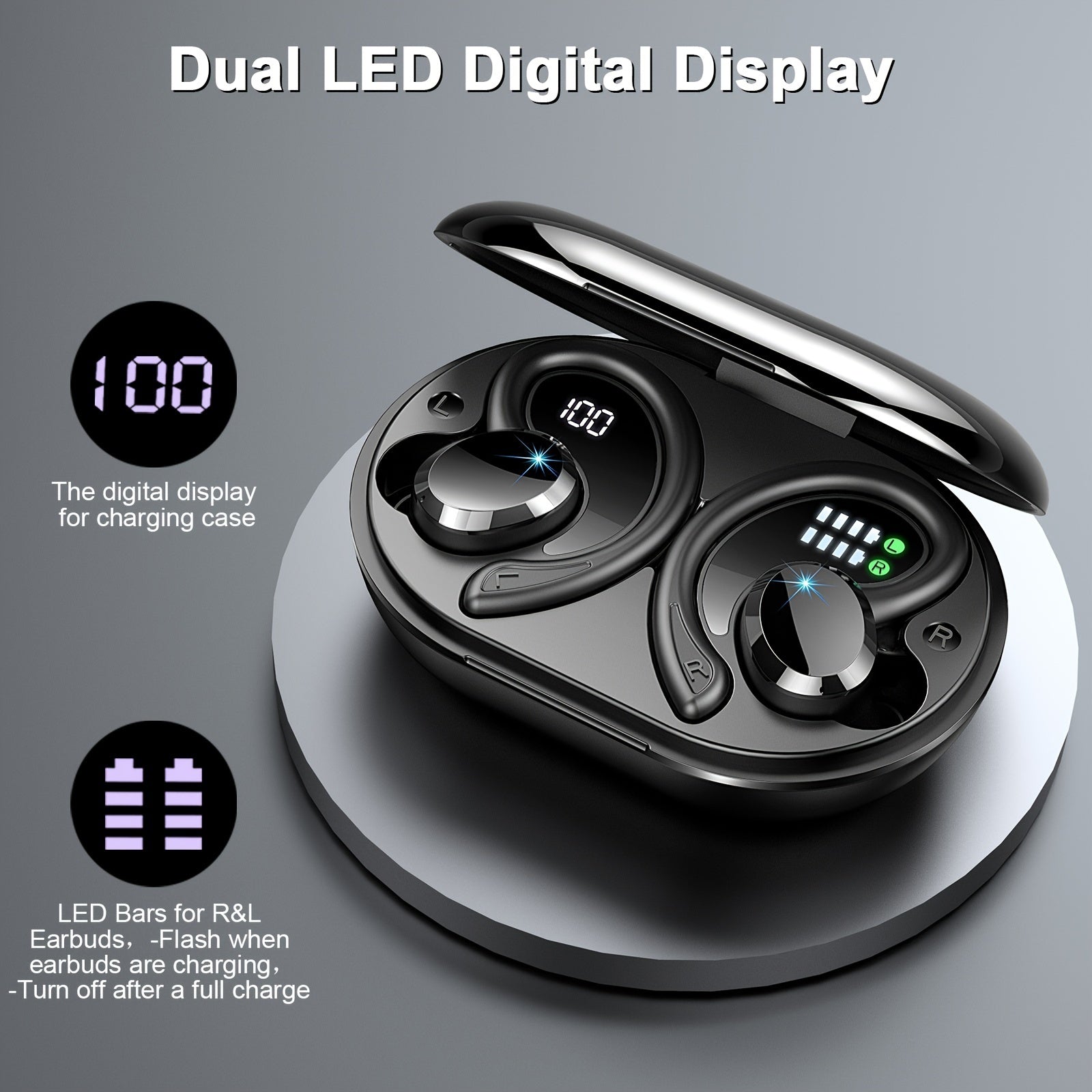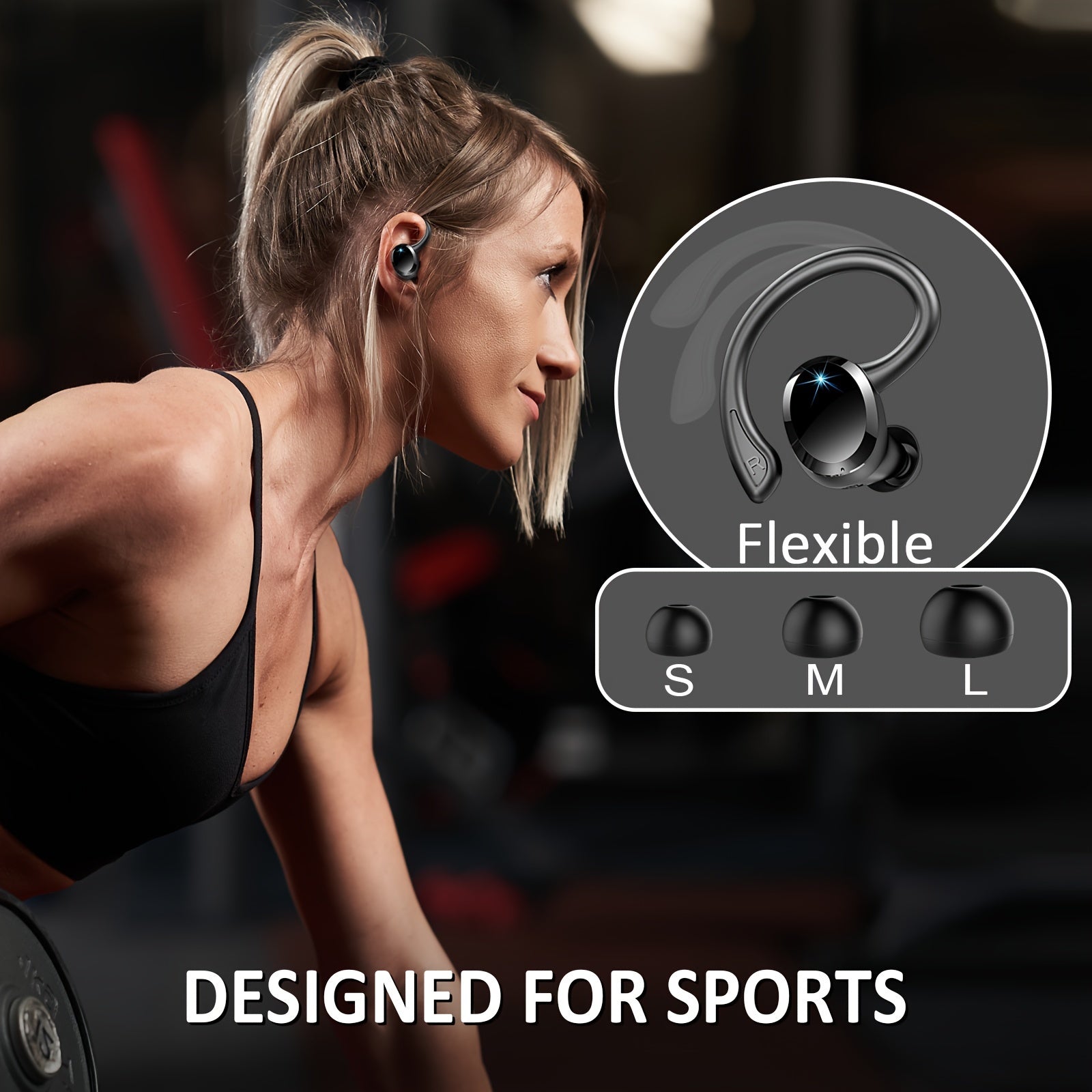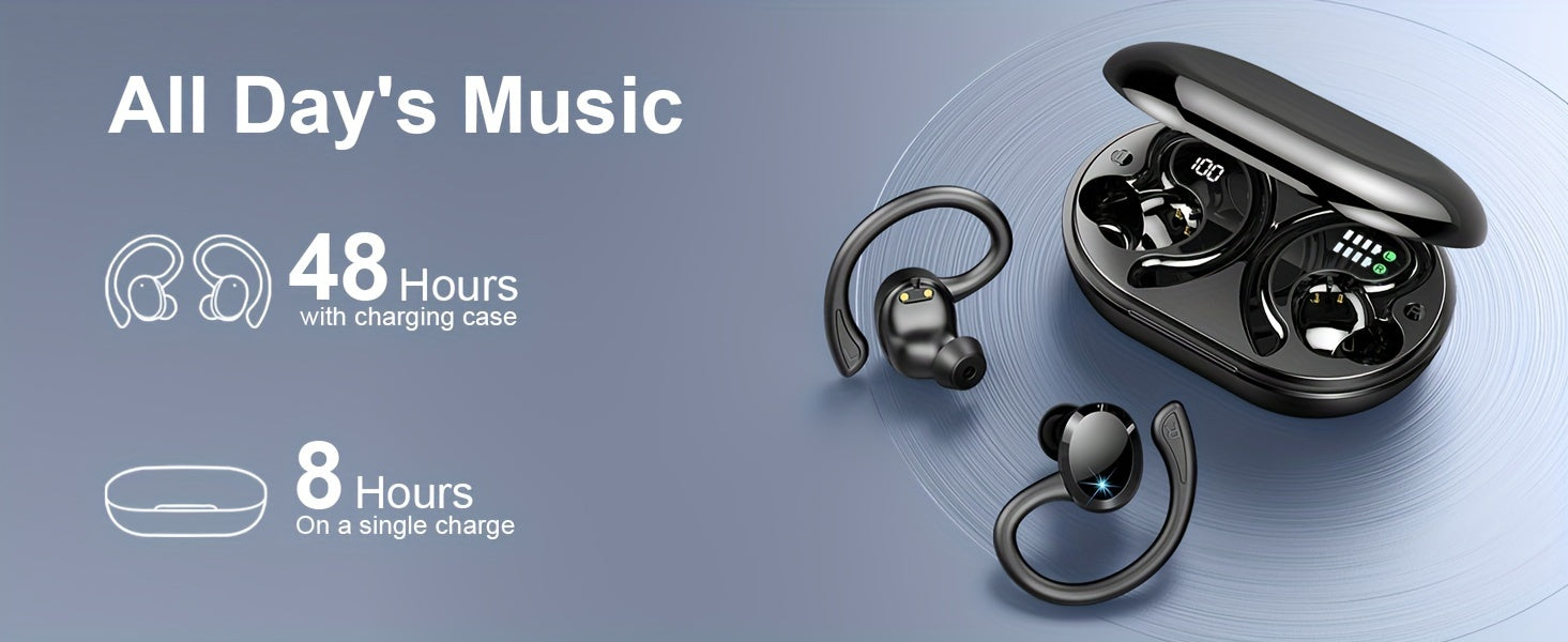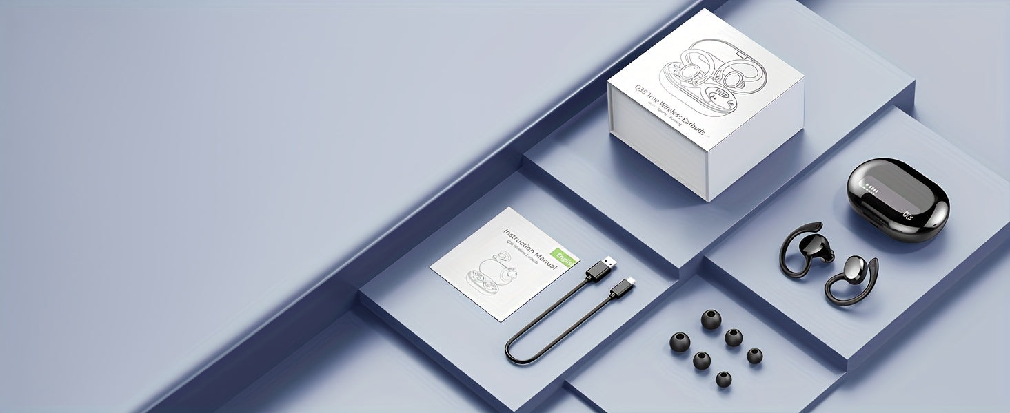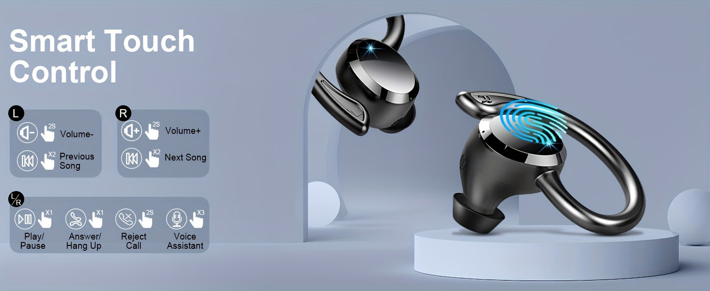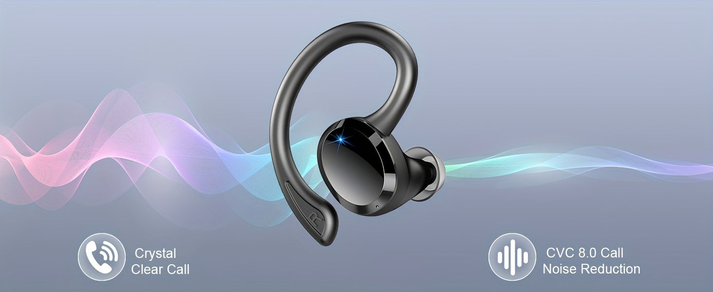 Écouteurs sans fil Q38 pour le sport, écouteurs sans fil 5.3 2024, écouteurs stéréo avec haut-parleur de 14.2 mm, écouteurs de 48 heures avec crochets d'oreille, microphone antibruit, écouteurs intra-auriculaires, adaptés à l'exercice/à la course à pied,