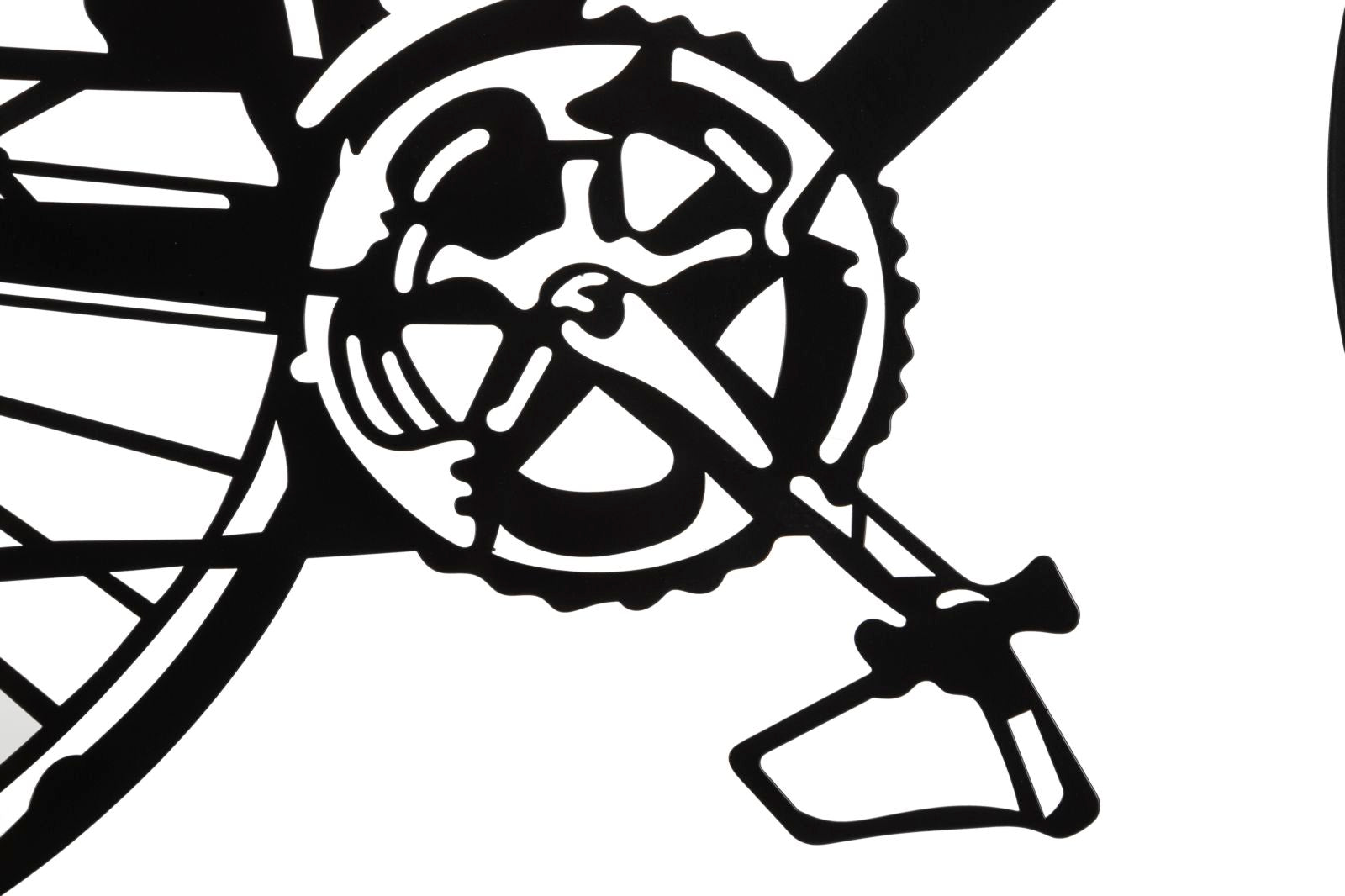 Set di 3 pannelli decorativi 3D rettangolari da parete in metallo nero che compongono una bicicletta creando un effetto di movimento.
