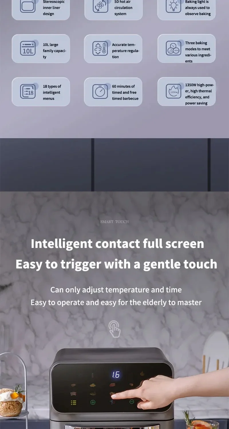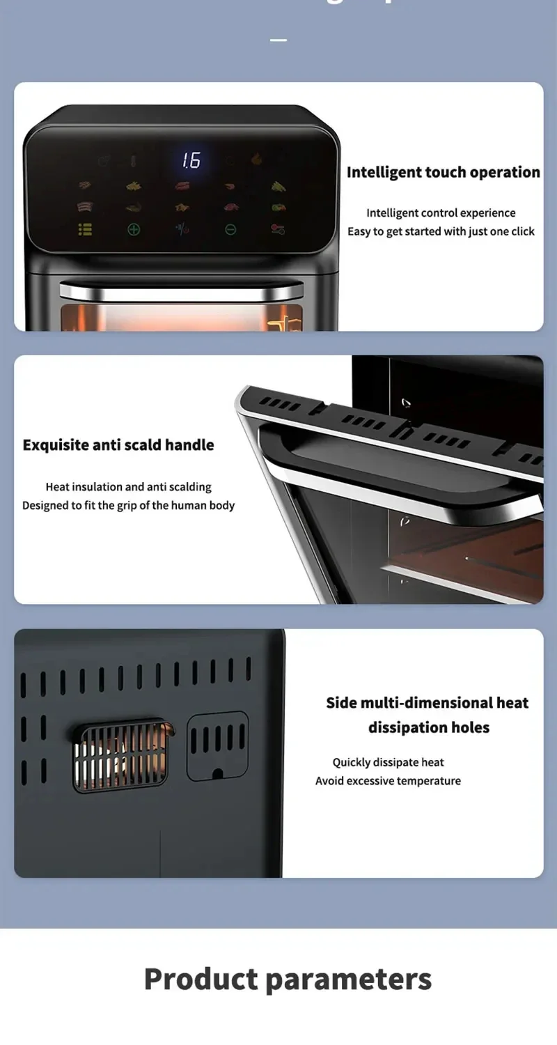 3. Multifonctionnel: cuisson et friture int¹Ègr¹Èes, pas besoin de retourner, circulation d'air chaud ½Ç 360 degr¹Ès.