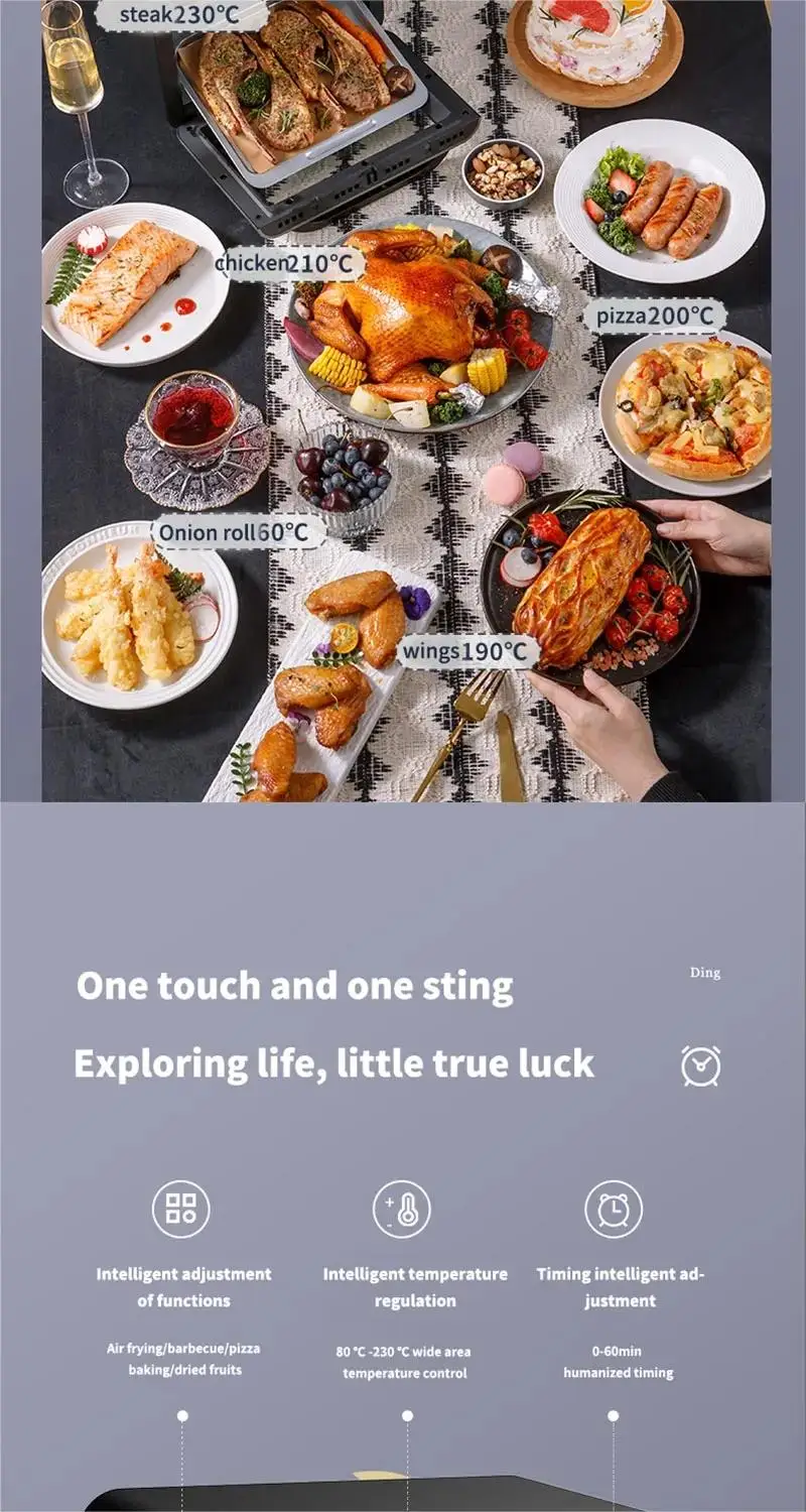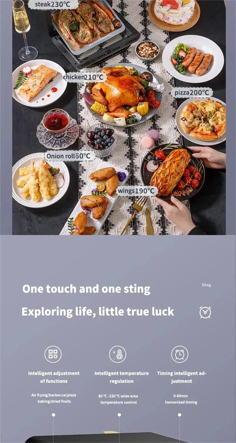 Friteuse ½Ç air ¹Èlectrique sans huile, machine ½Ç r?tir et ½Ç frire multifonctionnelle, ¹Ècran tactile LED visuel, grande capacit¹È, 10L, 1500W