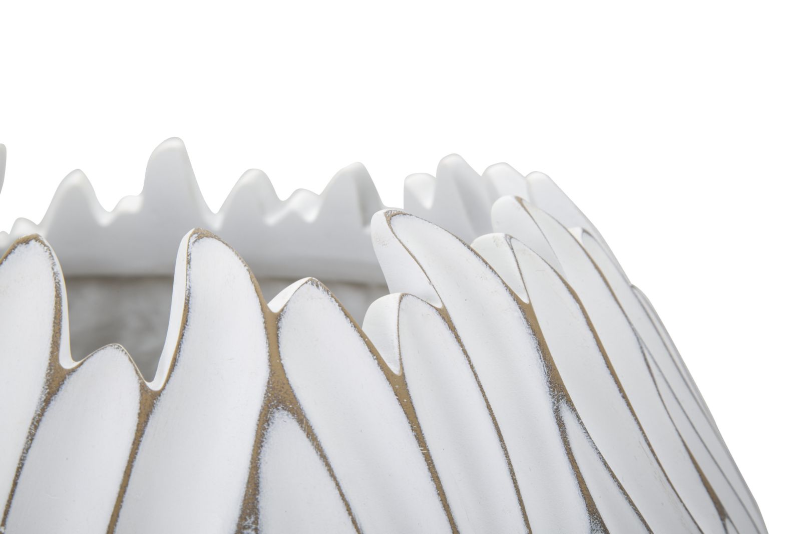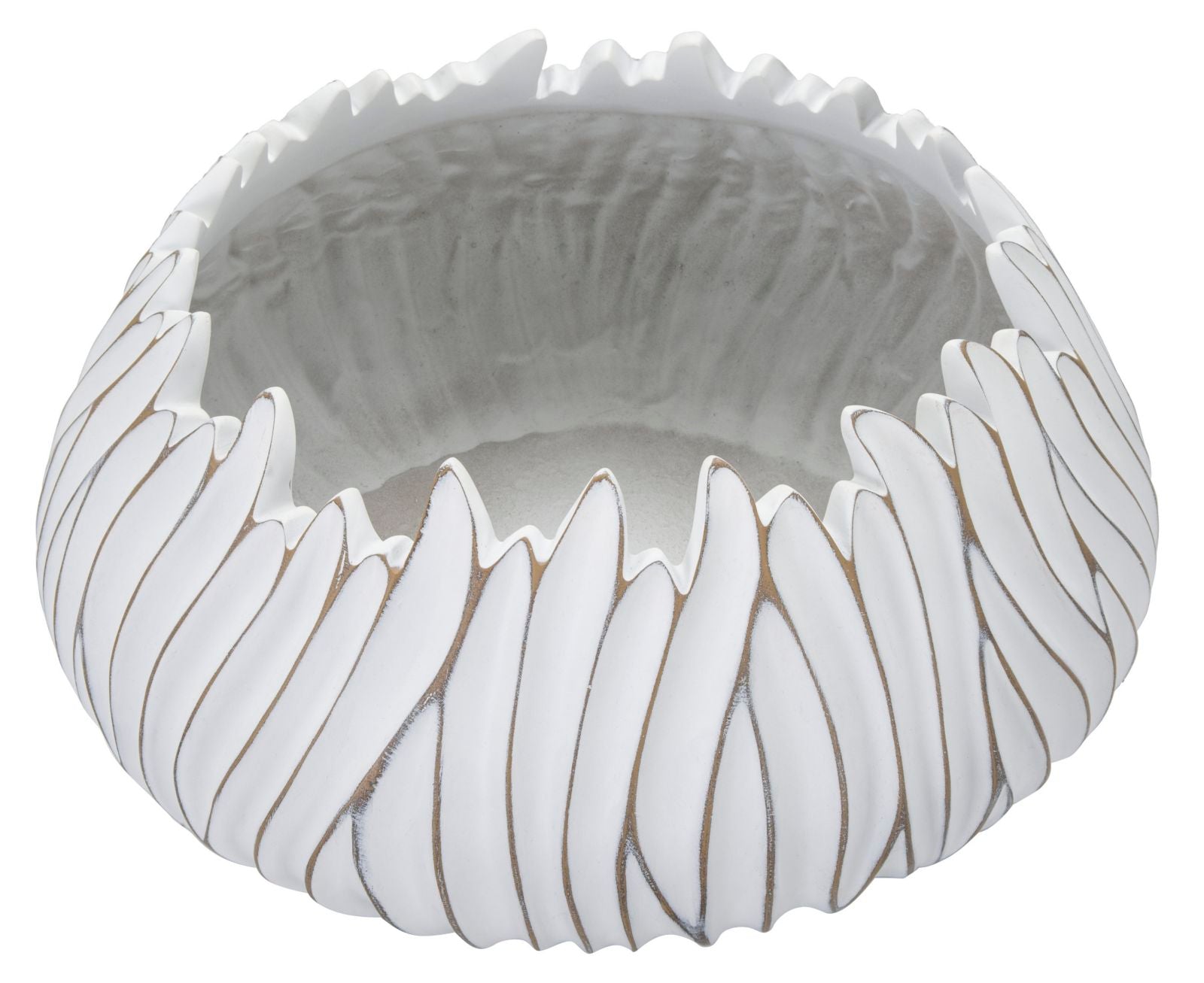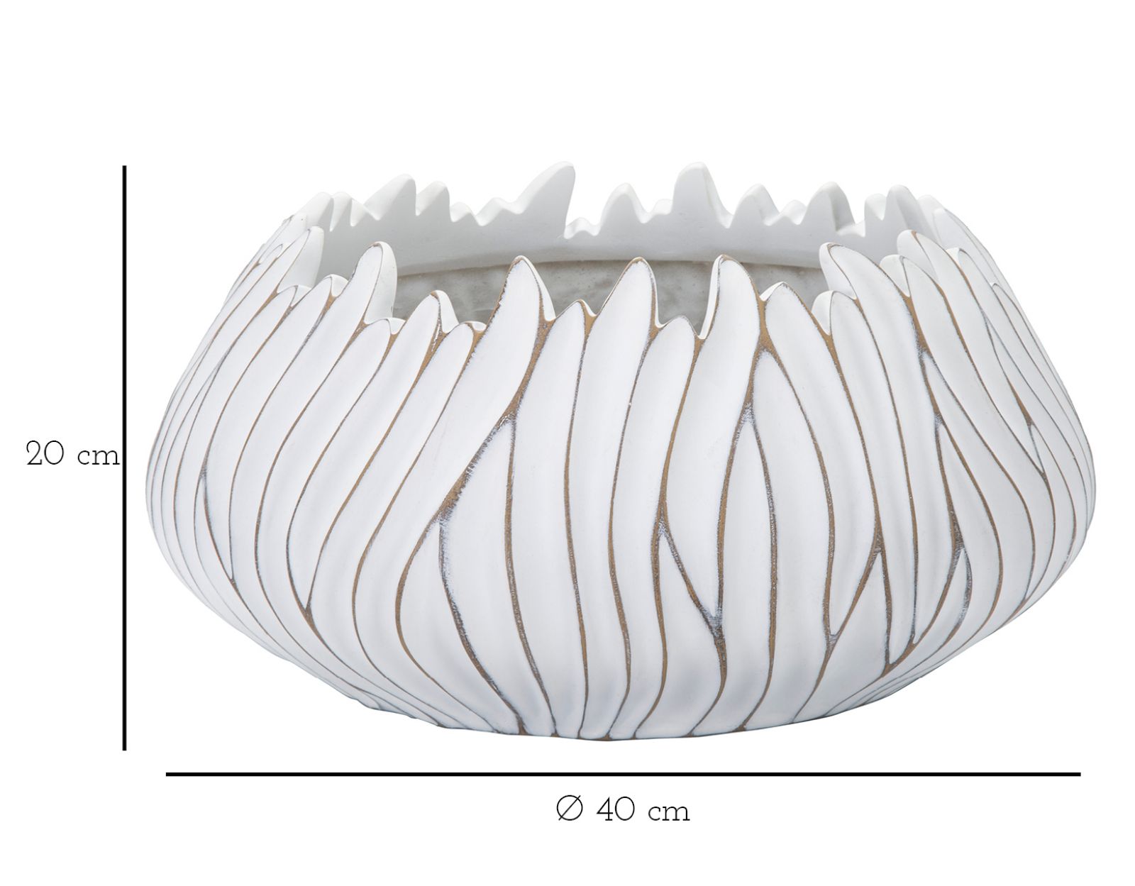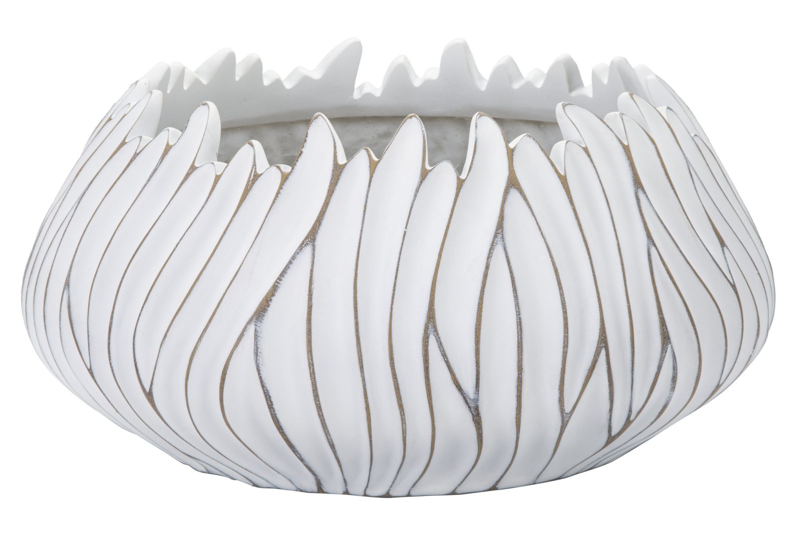 Cachepot rotondo con decorazioni ondulate in rilievo.