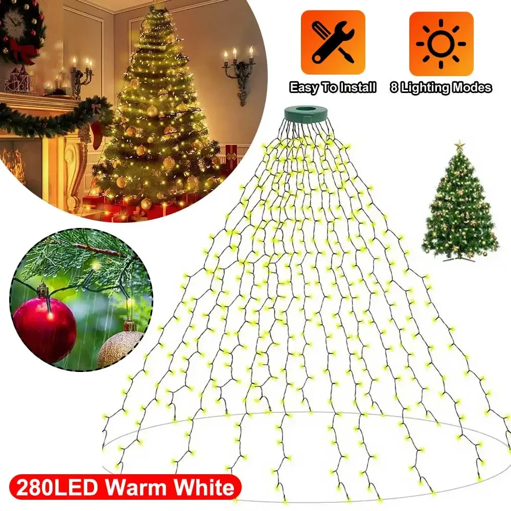 1. Lumiõ¹res de l'arbre de No?l ½Ç LED super lumineuses: 280 LEDs lumineuses, un total de 8 brins, 35 perles par brin, longueur de la lumiõ¹re 2m, cable de plomb 5m. Plus lumineux que les autres lumiõ¹res de No?l!