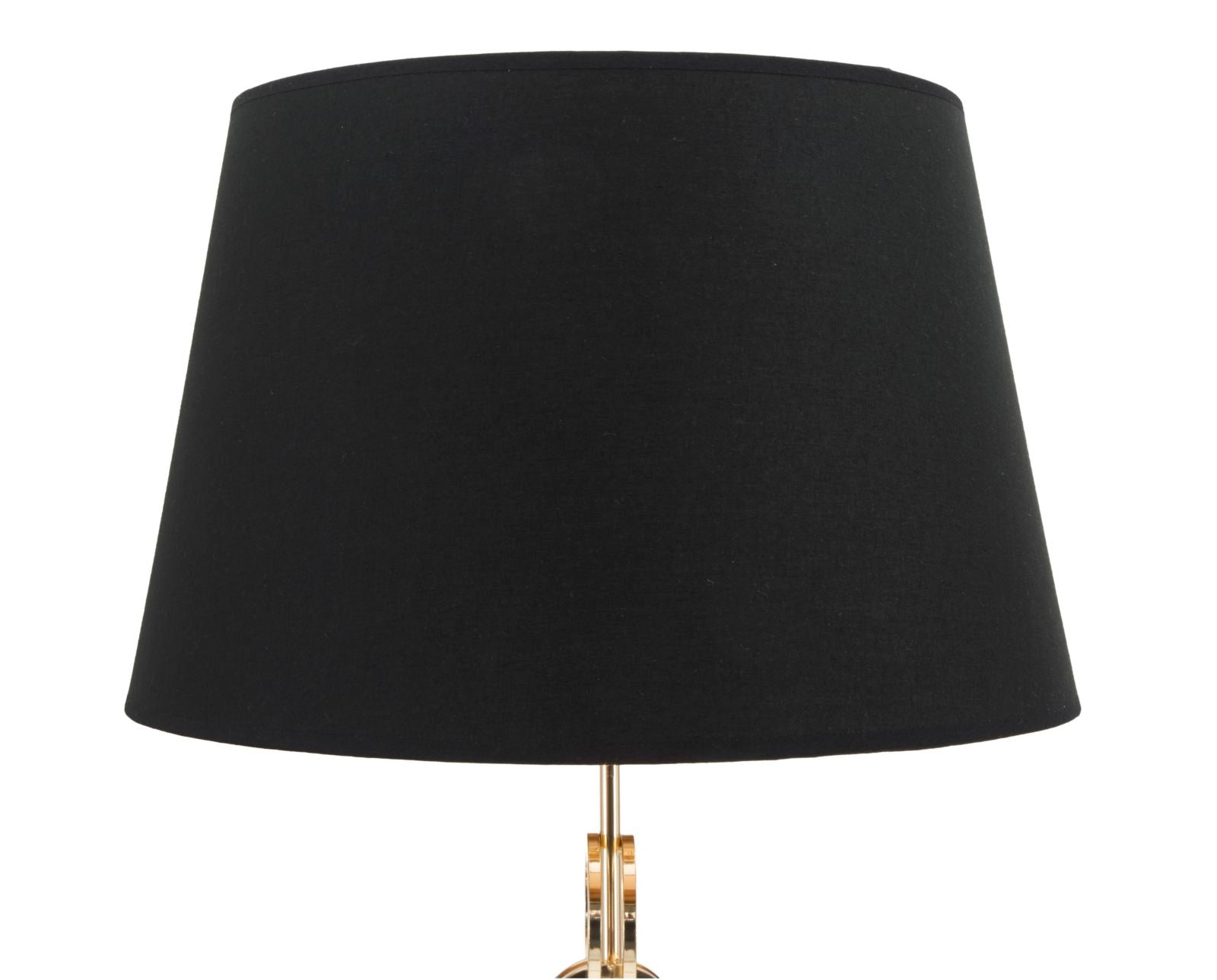 Piantana in metallo dorato con paralume in tessuto nero dal design geometrico e ipnotico. Lo stile glam combina dettagli chic e stravaganti. Lampade da tavolo e da terra che si fanno notare per l'abbinamento tra l'oro e colori accesi o colori pi¨´ dark come l'ardesia e il nero.