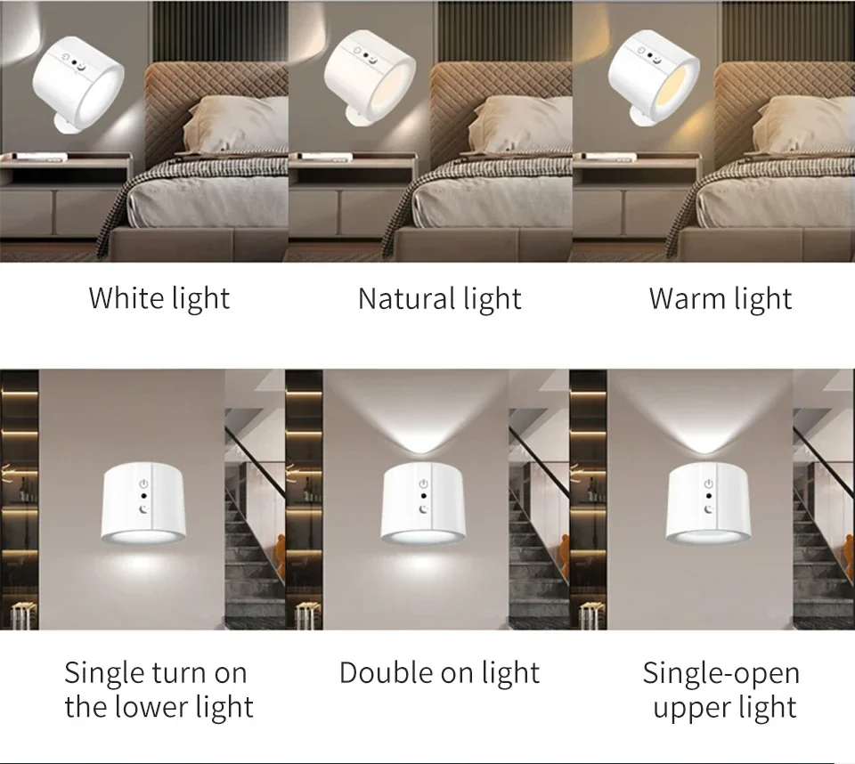 Éclairage bidirectionnel : ces appliques murales multifonctionnelles comportent deux sources de lumière LED différentes sur deux côtés, un spot rond sur l'envers et un projecteur sur l'avant, avec des températures de couleur de 3 000 K, 4 500 K et 6 500 K, qui peuvent être allumé et éteint en même temps ou individuellement.