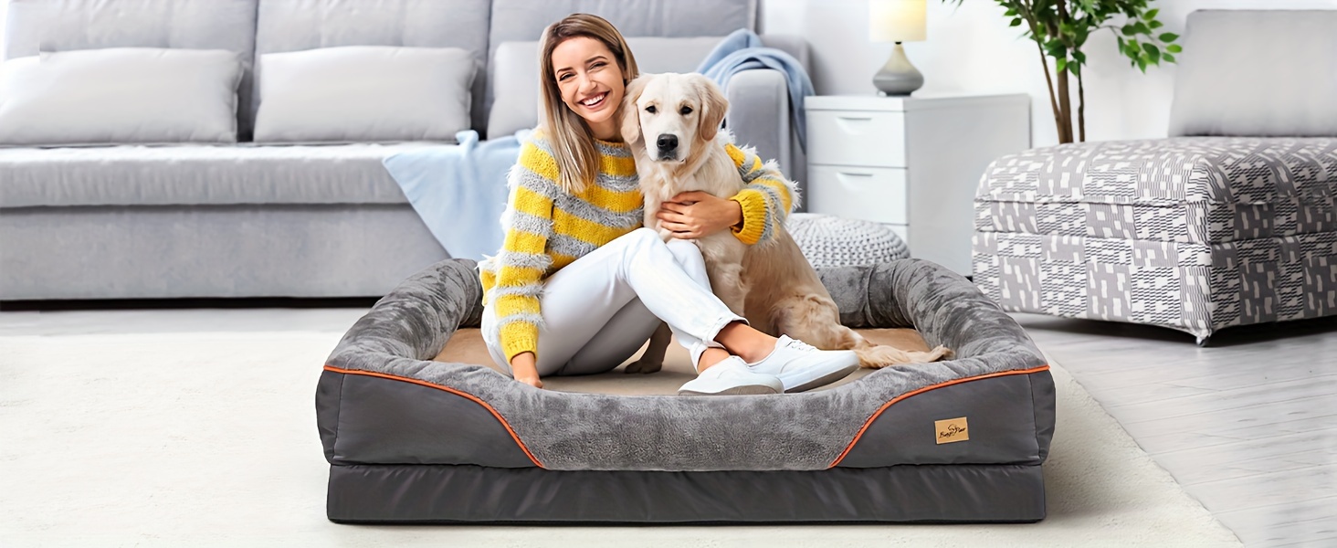 Lit orthop¨¦dique extra large pour chien, lit pour animal de compagnie en mousse ¨¦ponge, avec housse lavable ¨¤ fermeture ¨¦clair, canap¨¦-lit pour chien, pour grands chiens g¨¦ants, jouet couineur en cadeau, XL