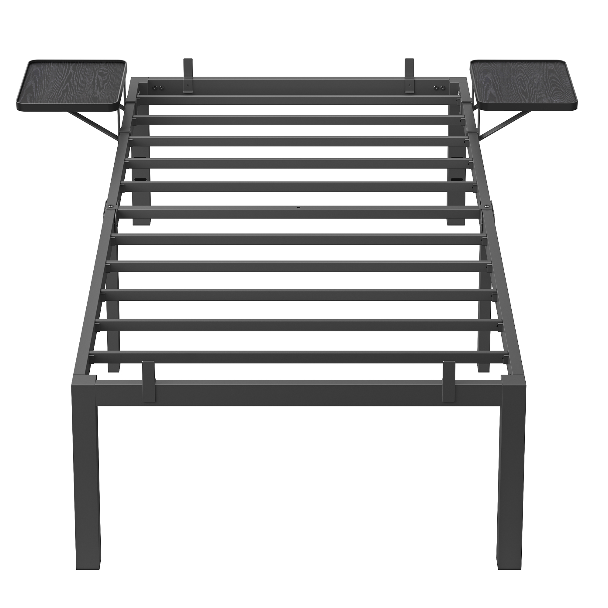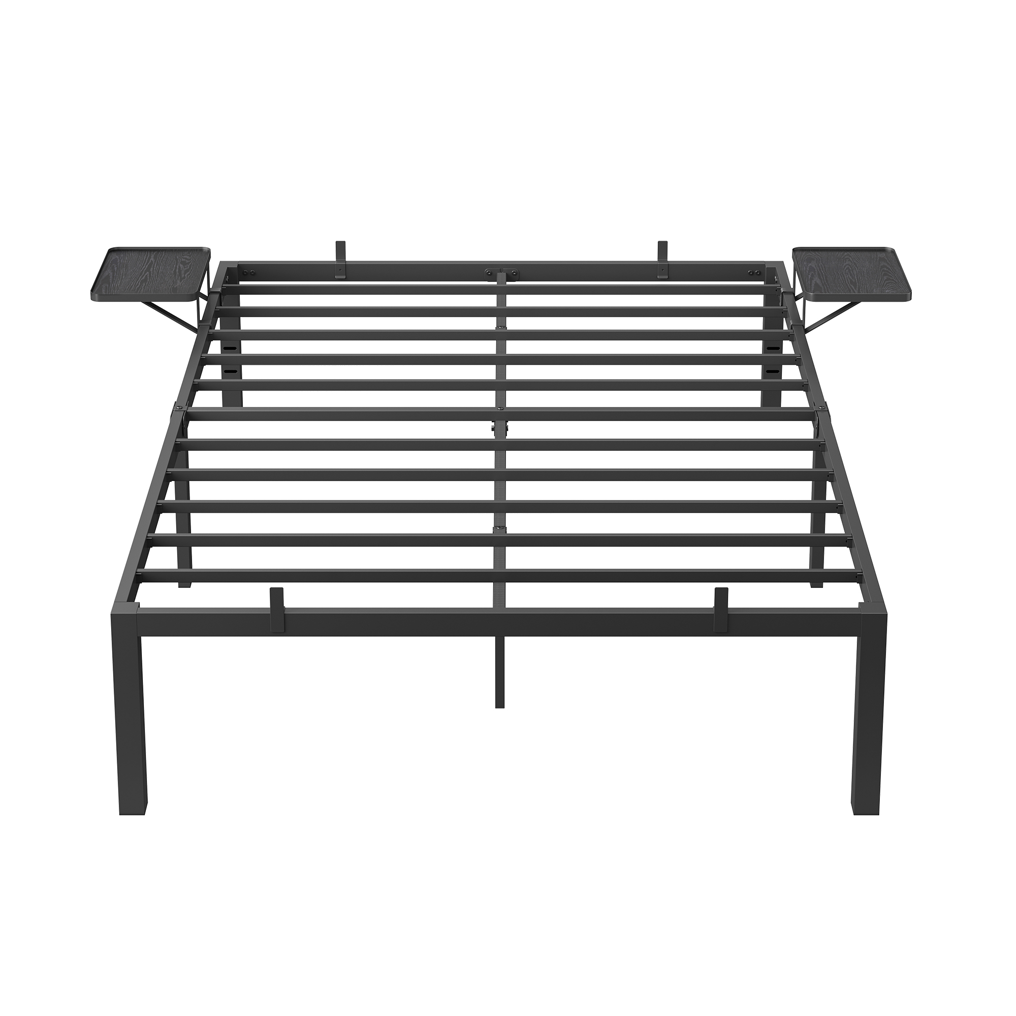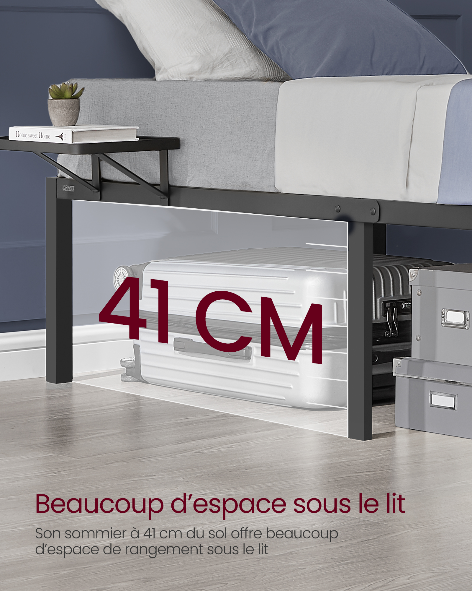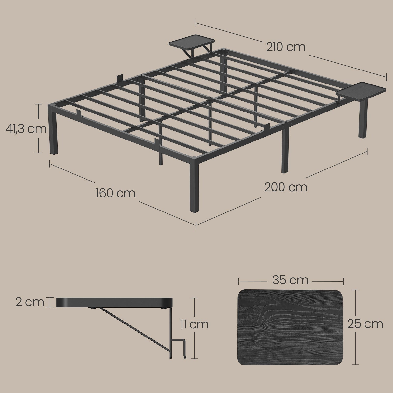 Lit Simple, Lit 1 Personne/Lit Double, Lit 2 Personnes, Cadre de Lit en M¨¦tal avec ¨¦tag¨¨res de Rangement, Lit Adolescent, Adapt¨¦ pour Matelas 160 x 200 cm, Montage Facile, Noir Classique