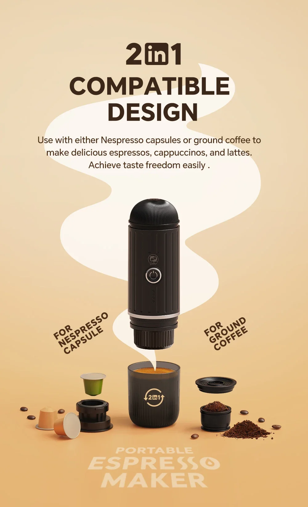 Machine ½Ç caf¹È expresso portable pour voiture et maison, 30ml, 70ml, capsules et poudre, d¹Èveloppement de type C, port Fit, noir
