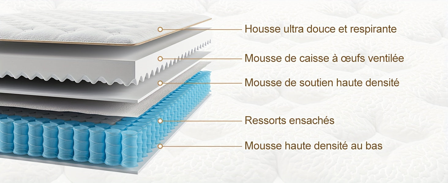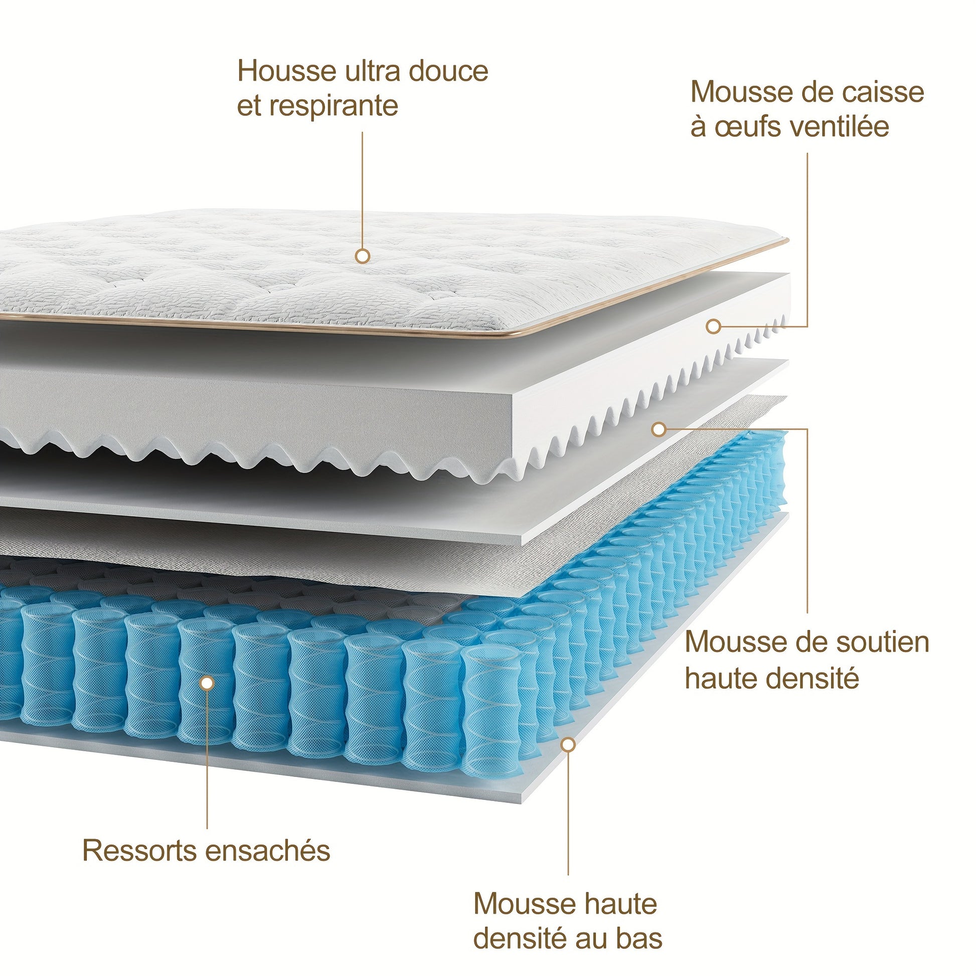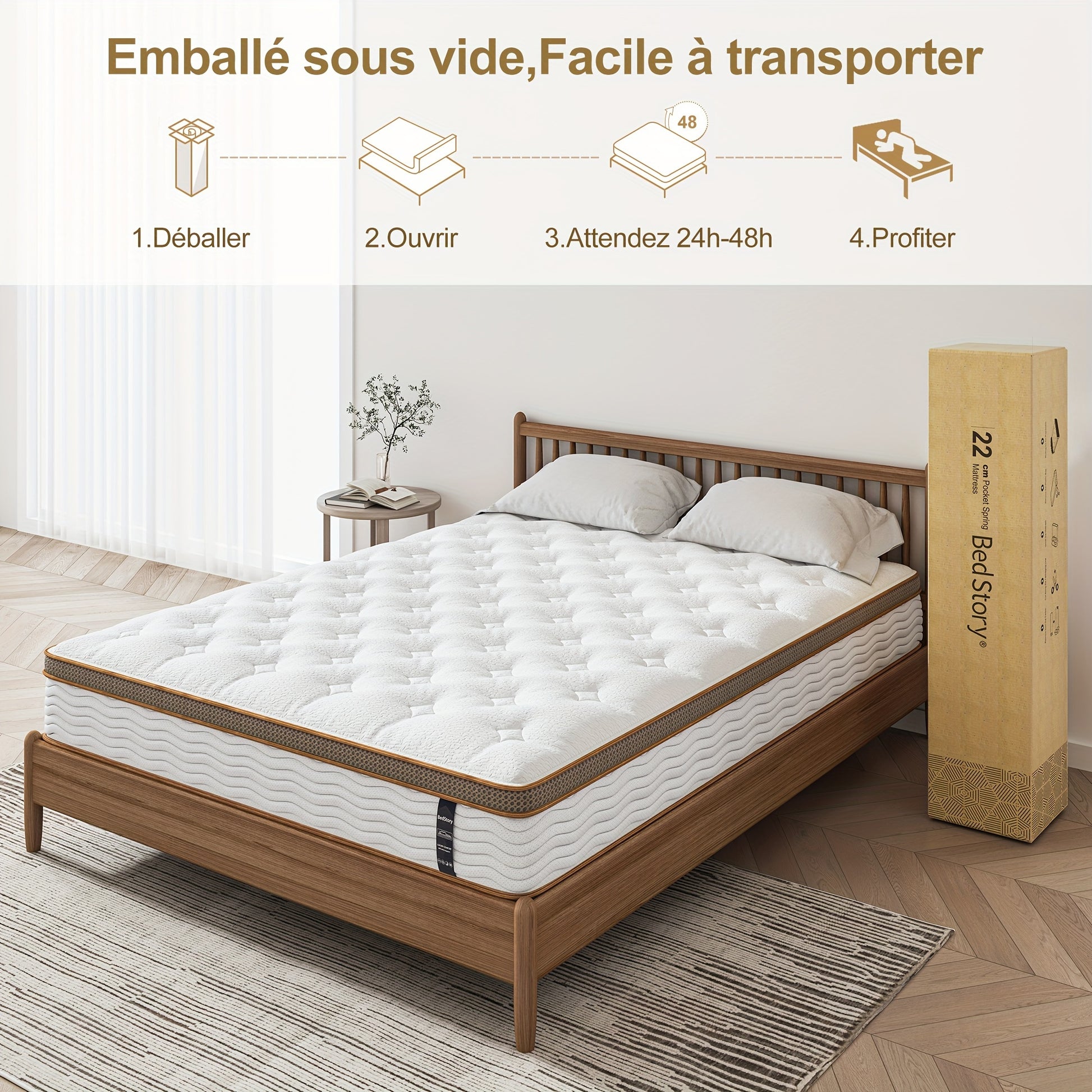 Matelas ¨¤ ressorts ensach¨¦s, mousse ¨¤ m¨¦moire de forme, technologie hybride multicouche, confort personnalis¨¦ - ¨¦paisseur 22 cm,90x190cm