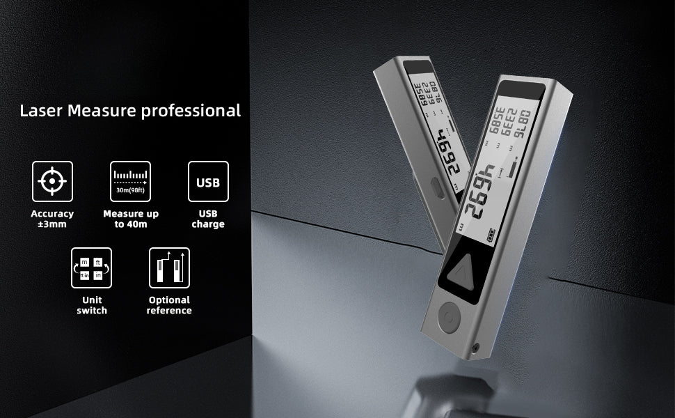 T¨¦l¨¦m¨¨tre laser Inter 40M, M120 , ruban ¨¤ mesurer, roulette avec roue, avec diffusion en anglais