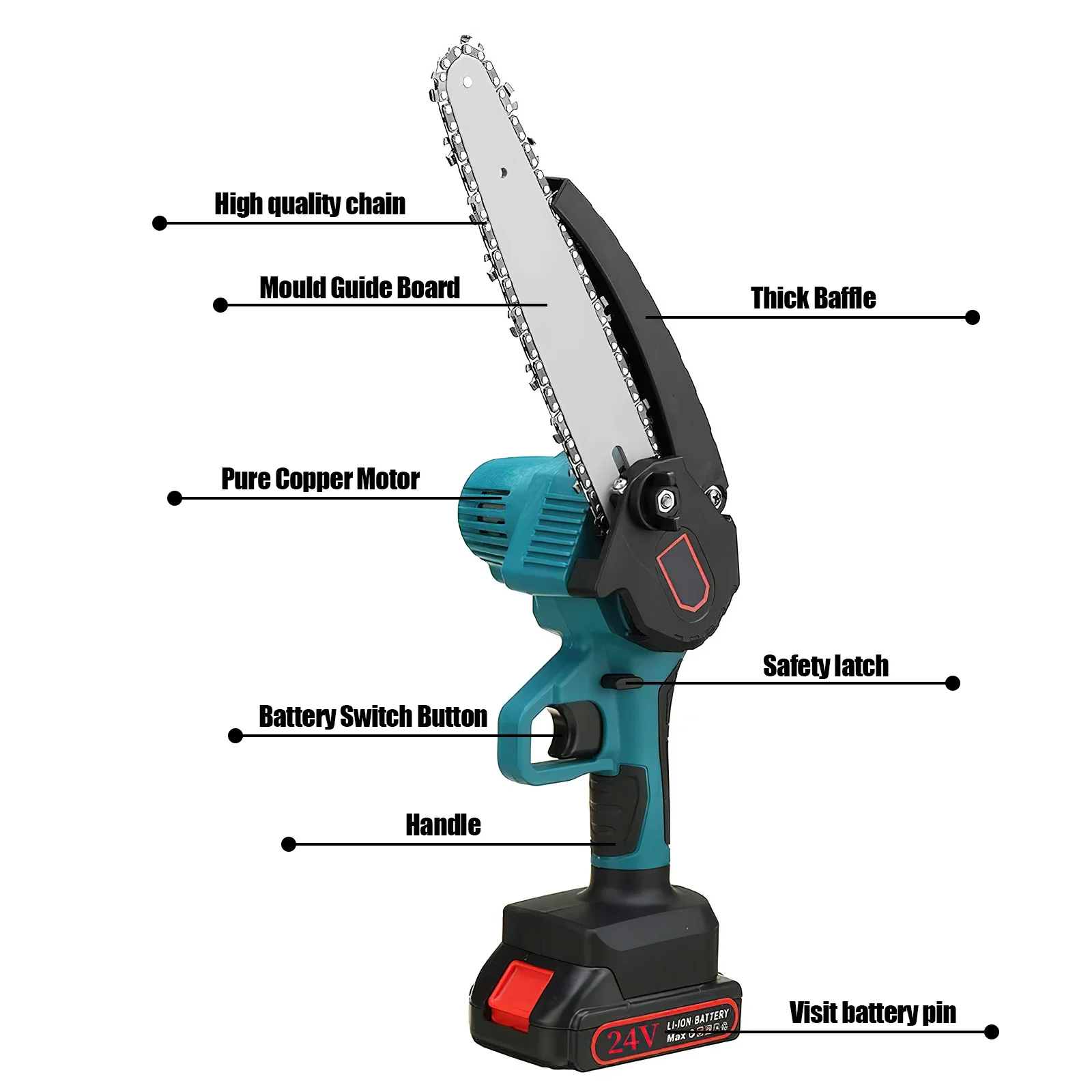 Mini scie ½Ç ¹Èlaguer ¹Èlectrique, tron?onneuses 3000W, 8 pouces, 24V avec Omicrophone, batterie au lithium, travail de calcul, scie de jardin, outils ¹Èlectriques