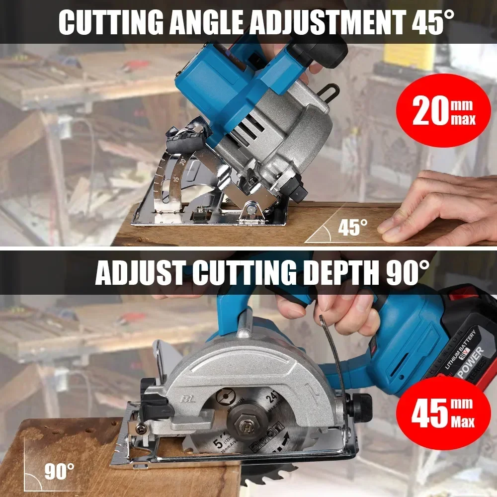 Mini scie circulaire ¹Èlectrique sans fil, 5 pouces, 125mm, 0-45, r¹Èglable, outil de jardinage ¹Èlectrique pour batterie Makita 18V