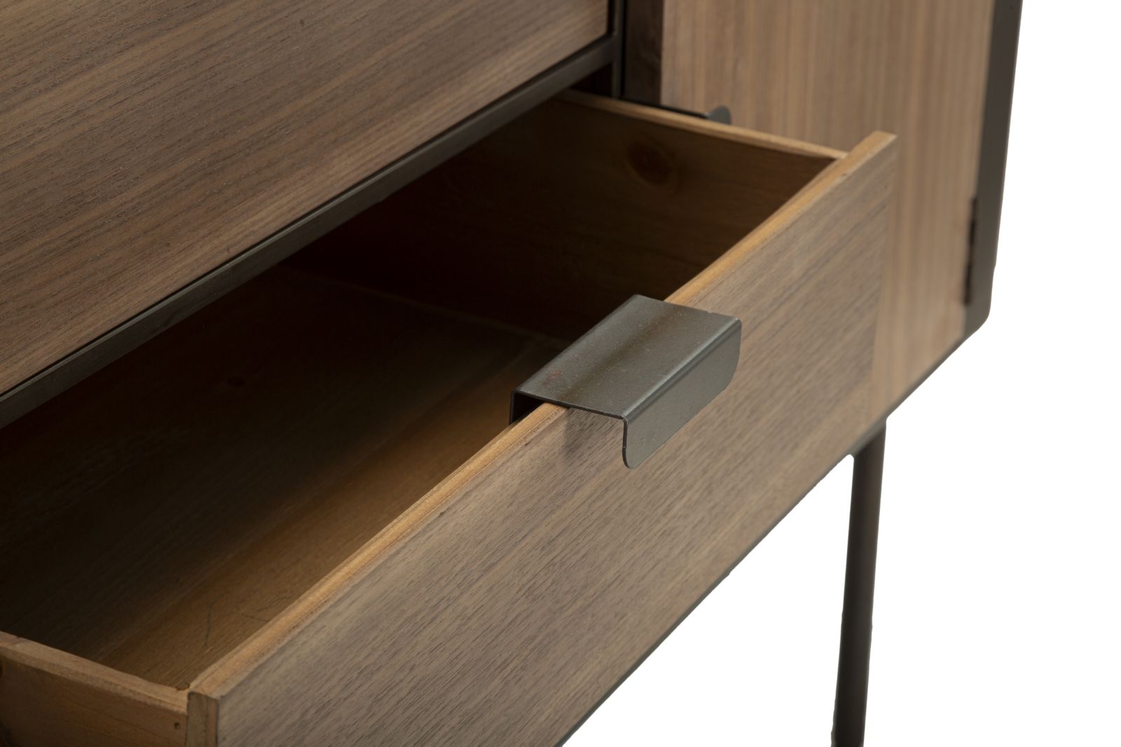 Mobile in metallo e legno con 3 cassetti e 2 ante. Il particolare design dalle linee semplici ma accattivanti rende l'articolo perfetto per ogni tipologia di arredo. Gambe da assemblare.