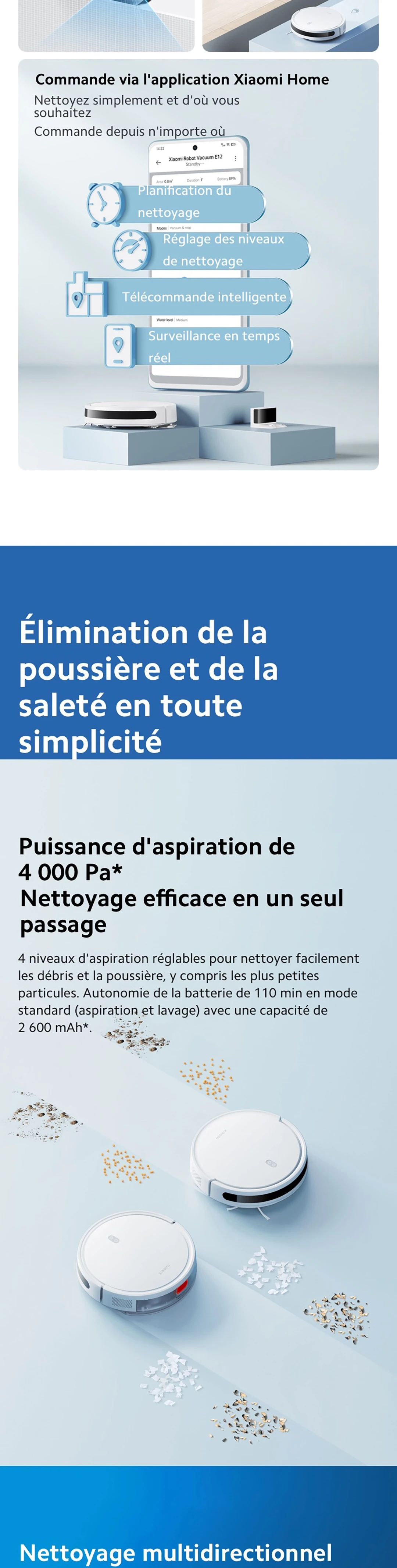 Robot Vacuum E12,Puissance d'aspiration de 4000 Pa,Planification intelligente des parcours aspirateur robot